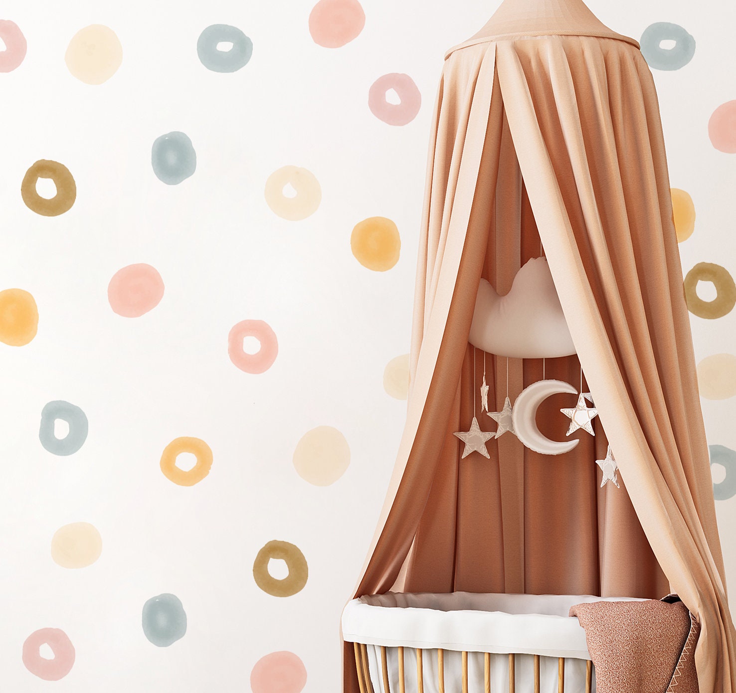 Dosiahnite dokonalý priestor pre svoje dieťa s našou minimalistickou nálepkou na stenu s bodkami vhodnou najmä do detskej izby. Obtlačok na stenu je jedným z najnovších trendov v oblasti bytových dekorácií. Samolepky rozmiestnite jednotlivo po celej stene podľa vlastných predstáv. Ľahko sa aplikujú a nezanechávajú na stenách stopy!