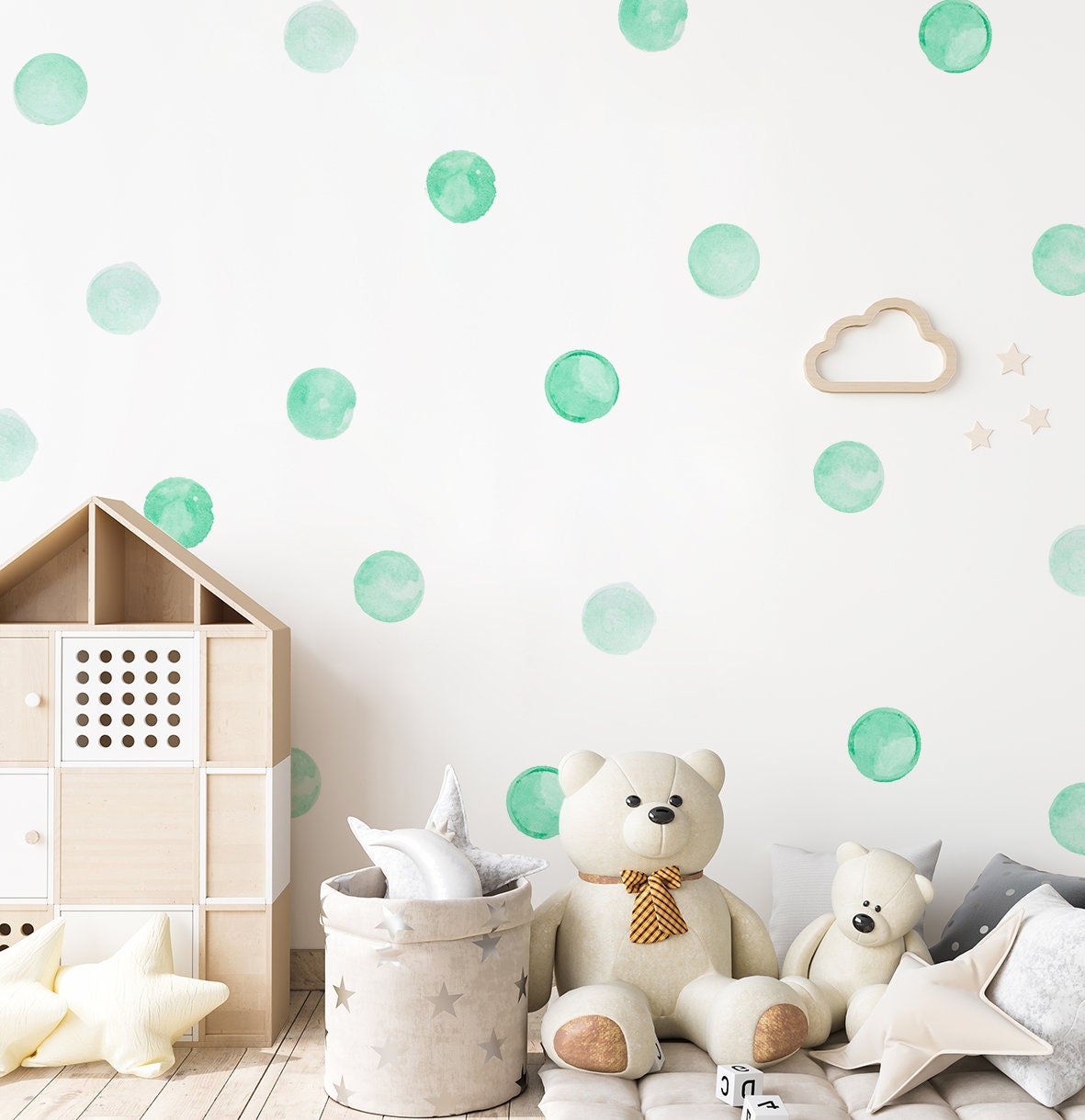 Bodky na stenu. Akvarelové bodky, zelene bodky na stenu – Samolepiace dekorácie na stenu