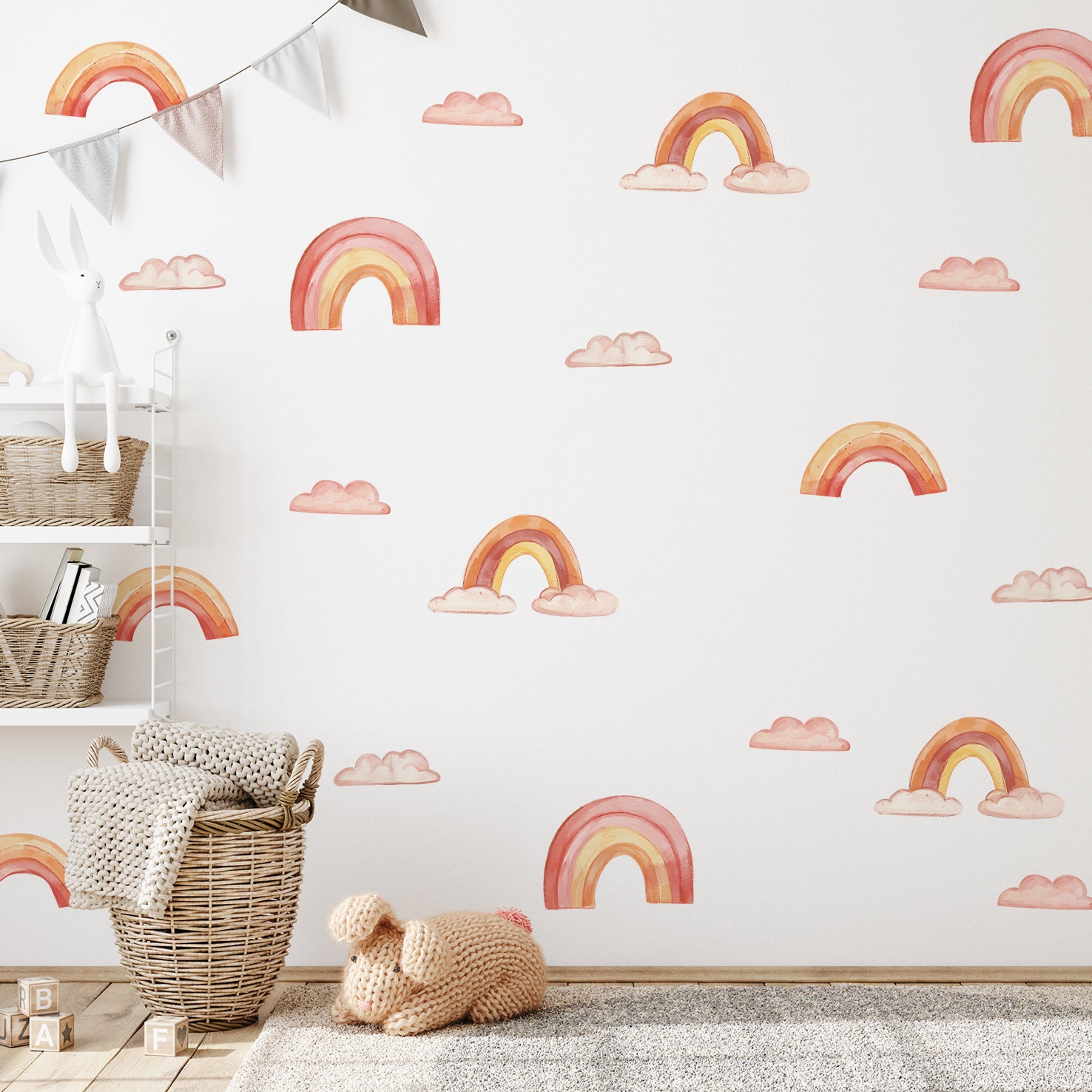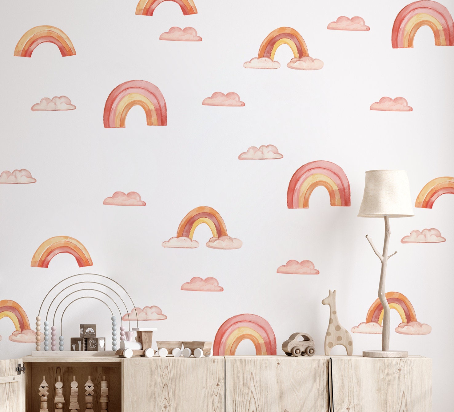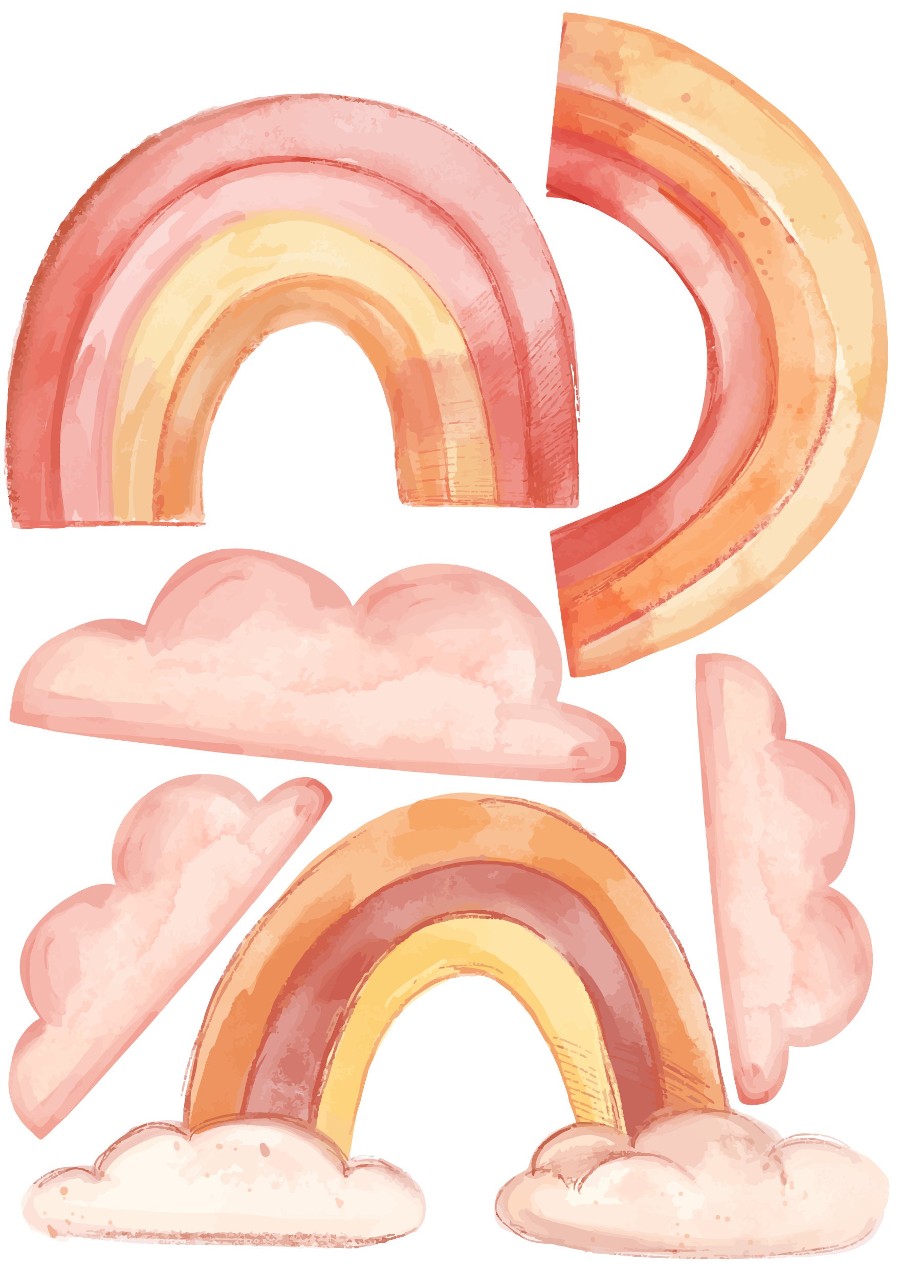 Boho Nálepky na stenu. Abstraktné dúhy, mraky, dáždniky (1) – Samolepiace dekorácie na stenu