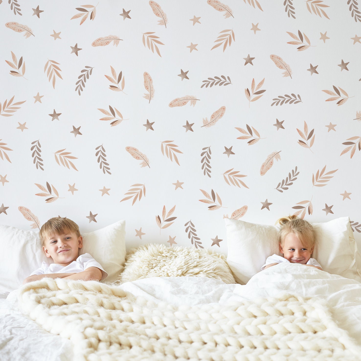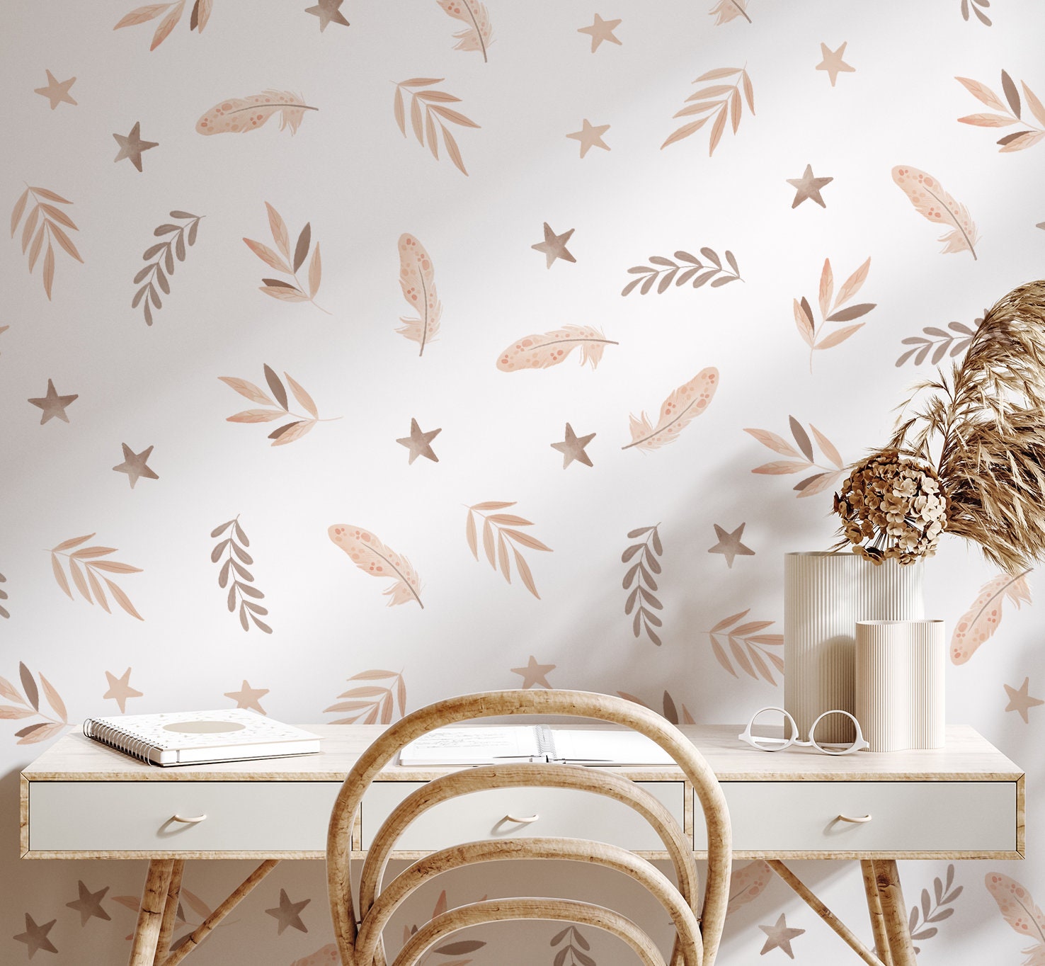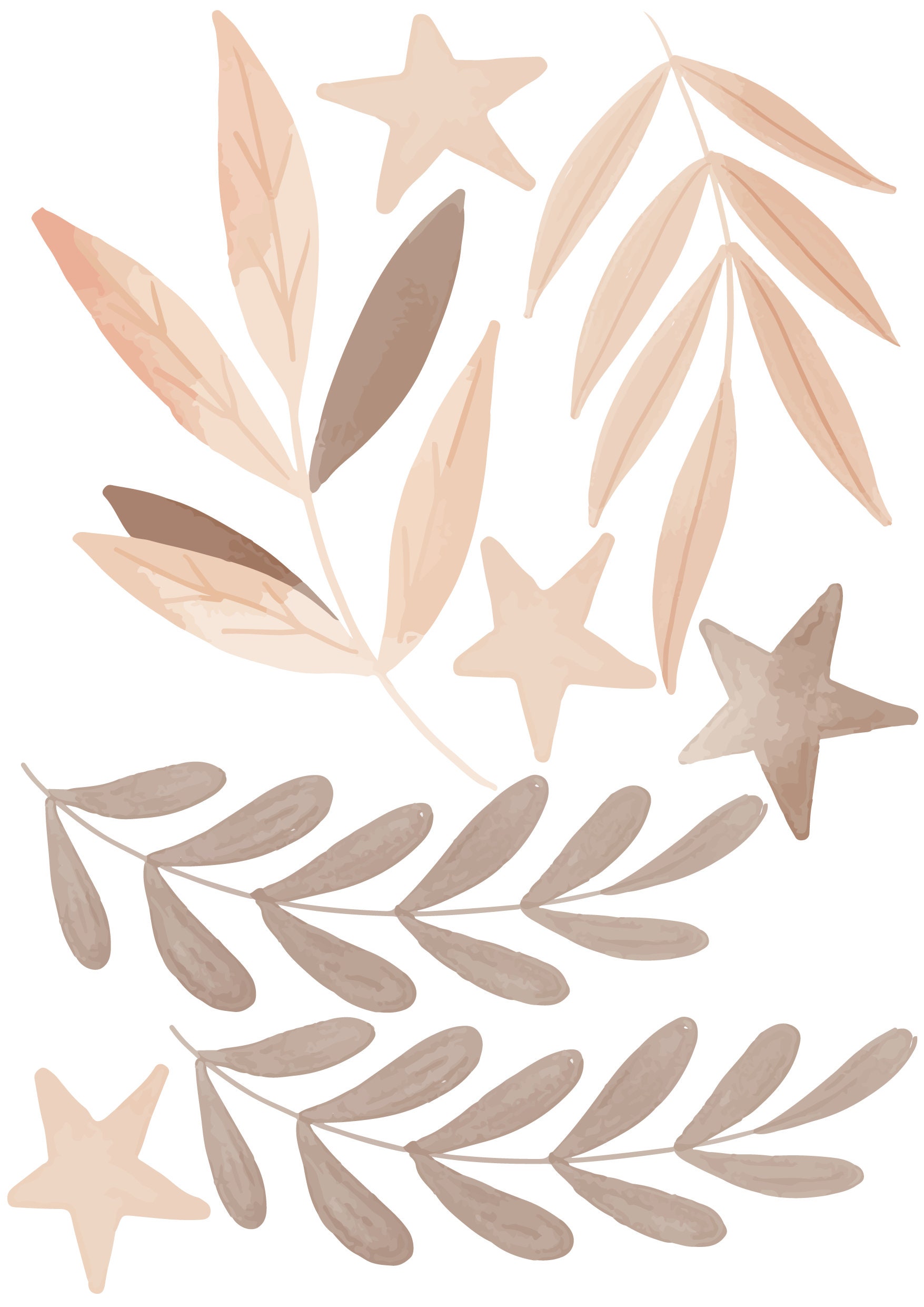 Boho Nálepky na stenu. Abstraktné listy, perie, hviezdy – Nálepky na stenu s hviezdami a oblohou