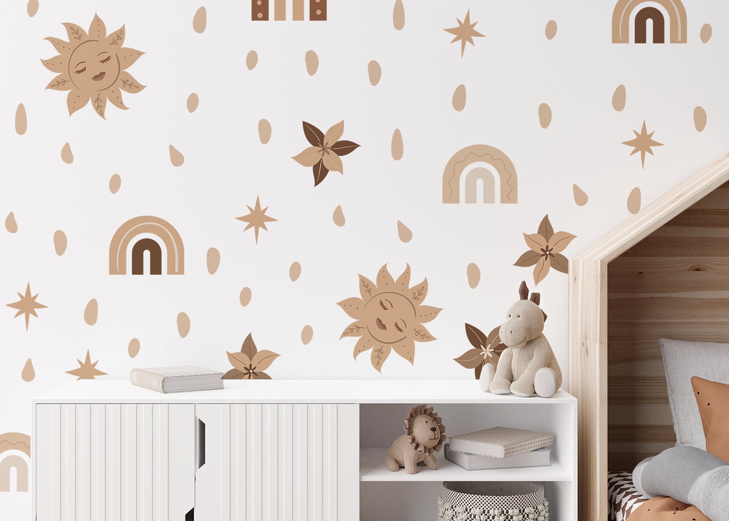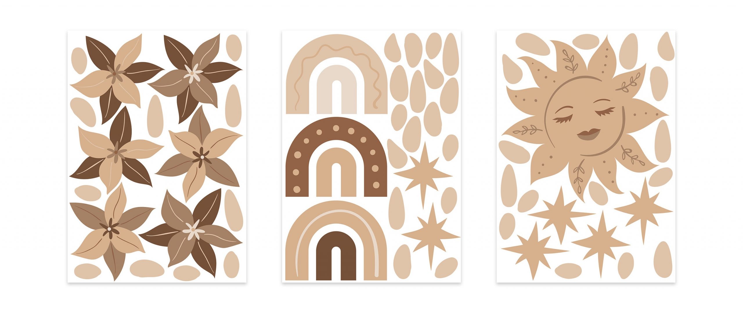 S našimi minimalistickými boho nálepkami na stenu vhodnými do každej miestnosti dosiahnete svoj vysnívaný domov. Perfektne bude vyzerať aj v obývacej izbe, kancelárii alebo detskej izbe. Nálepka na stenu je jedným z najnovších trendov v oblasti bytových dekorácií. Samolepky si môžete rozmiestniť jednotlivo po celej stene podľa vlastných predstáv. Ľahko sa aplikujú a nezanechávajú na stenách stopy!
