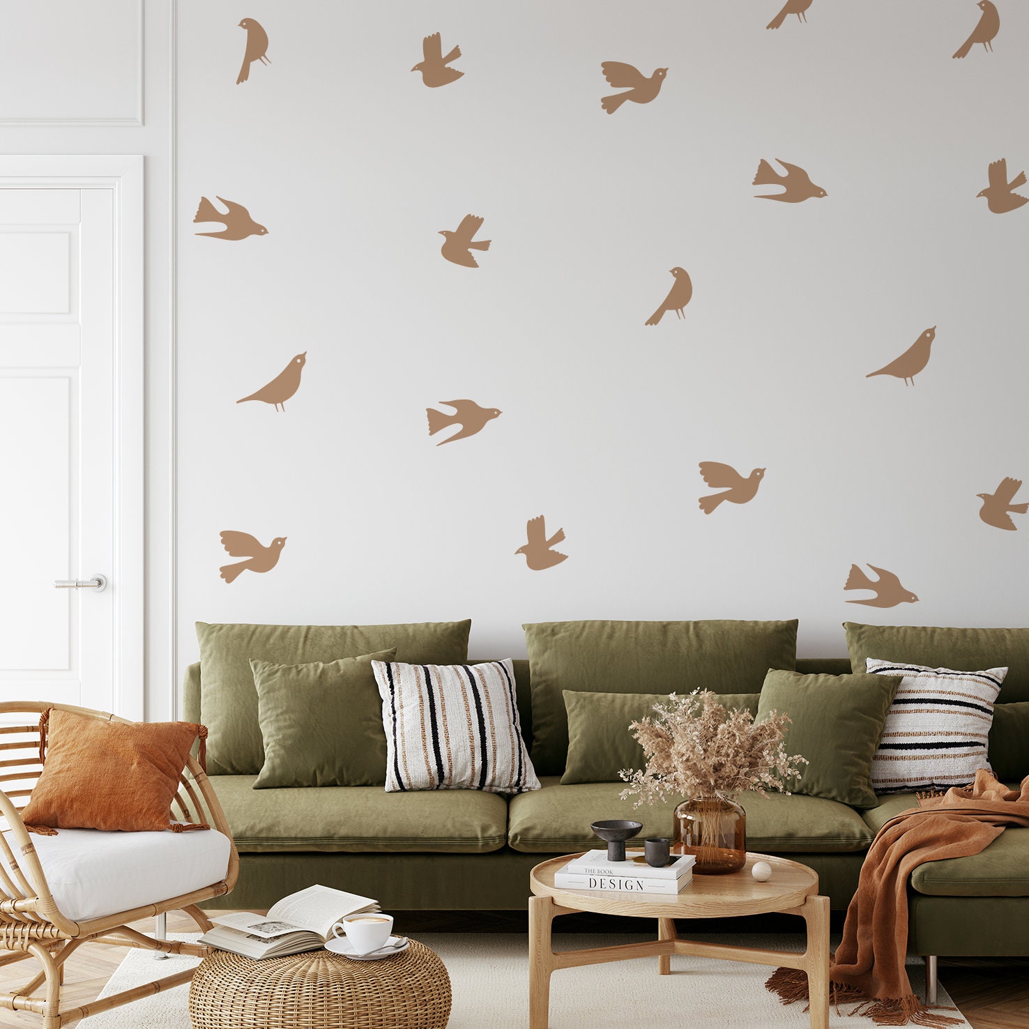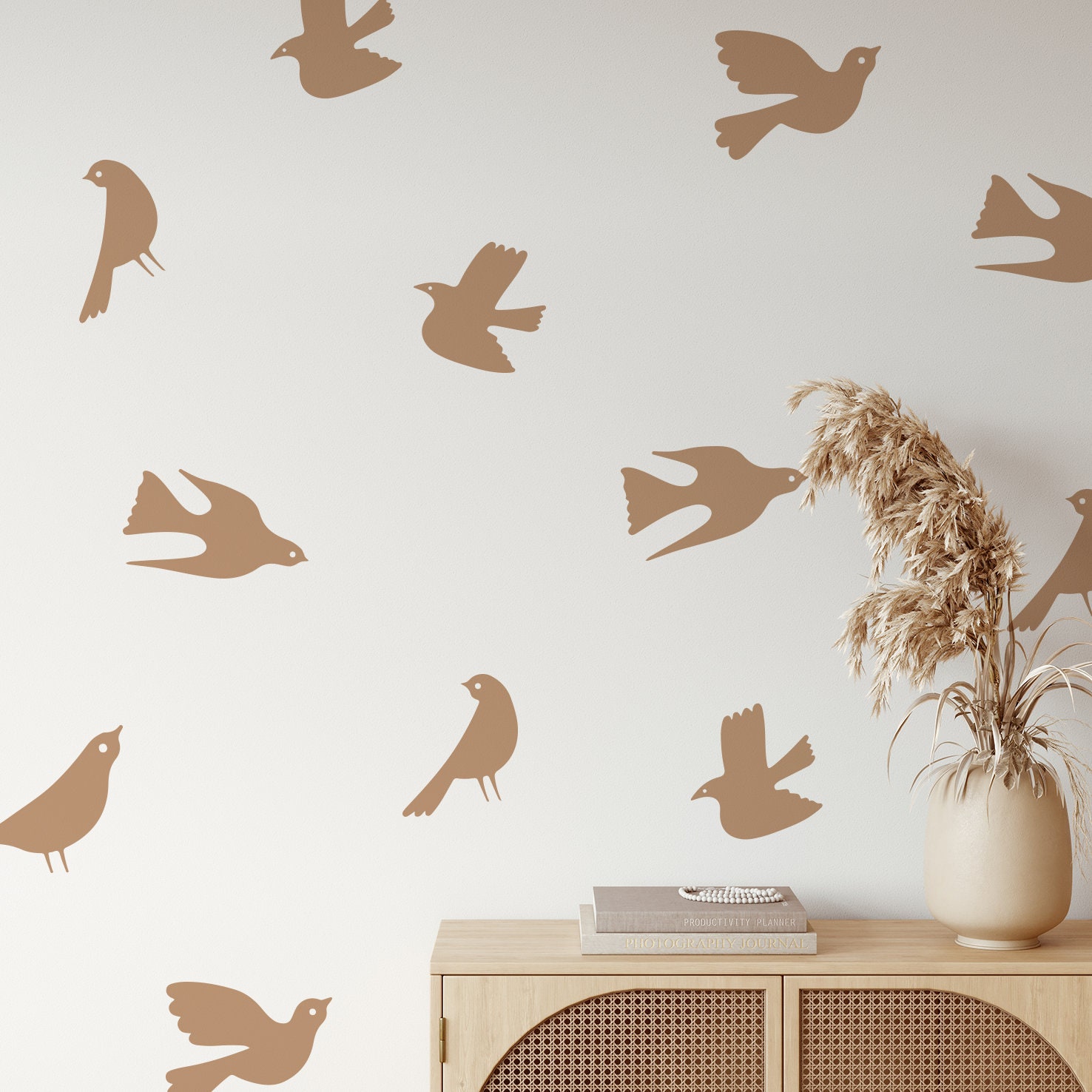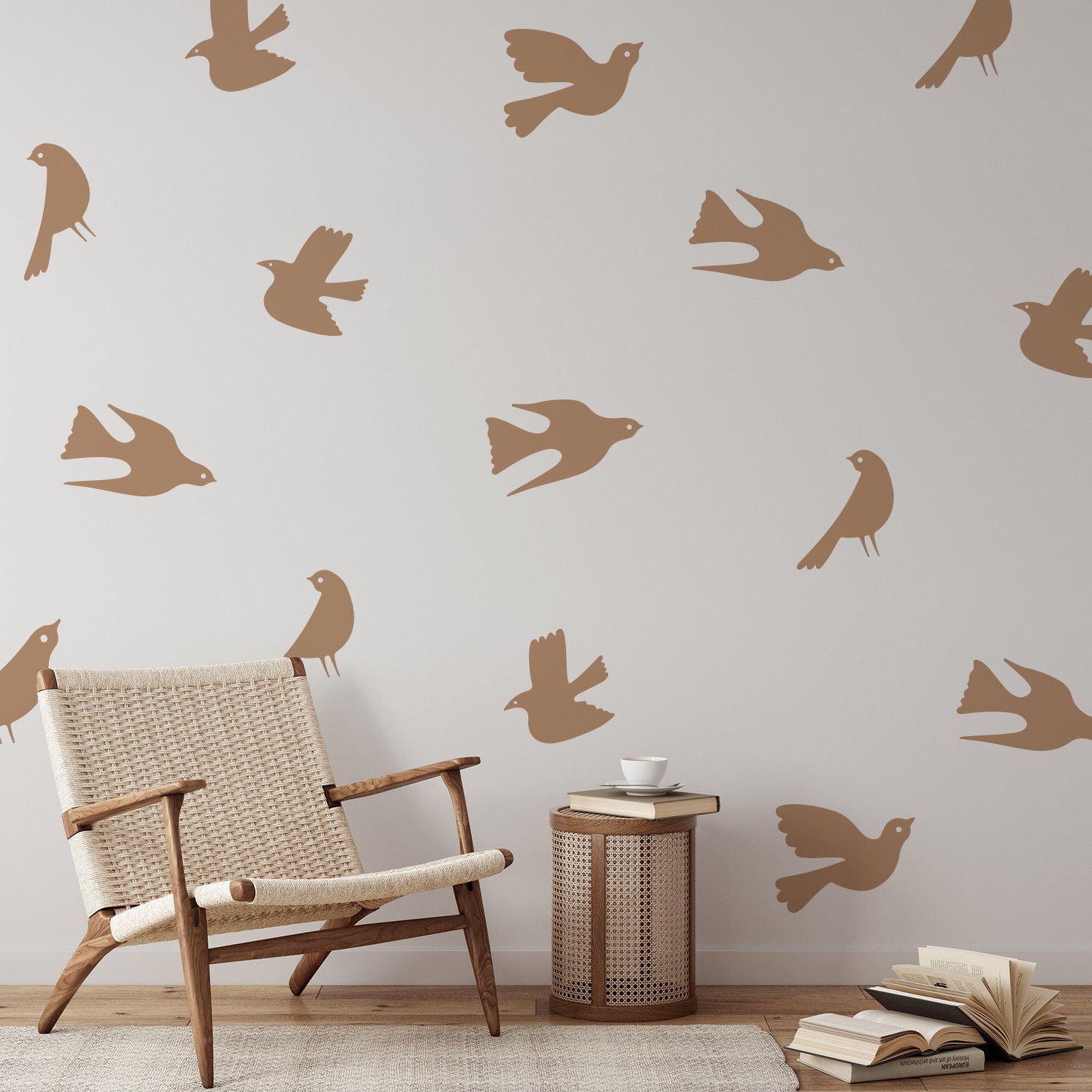 Boho nálepky na stenu. Abstraktné vtáky – Samolepiace dekorácie na stenu