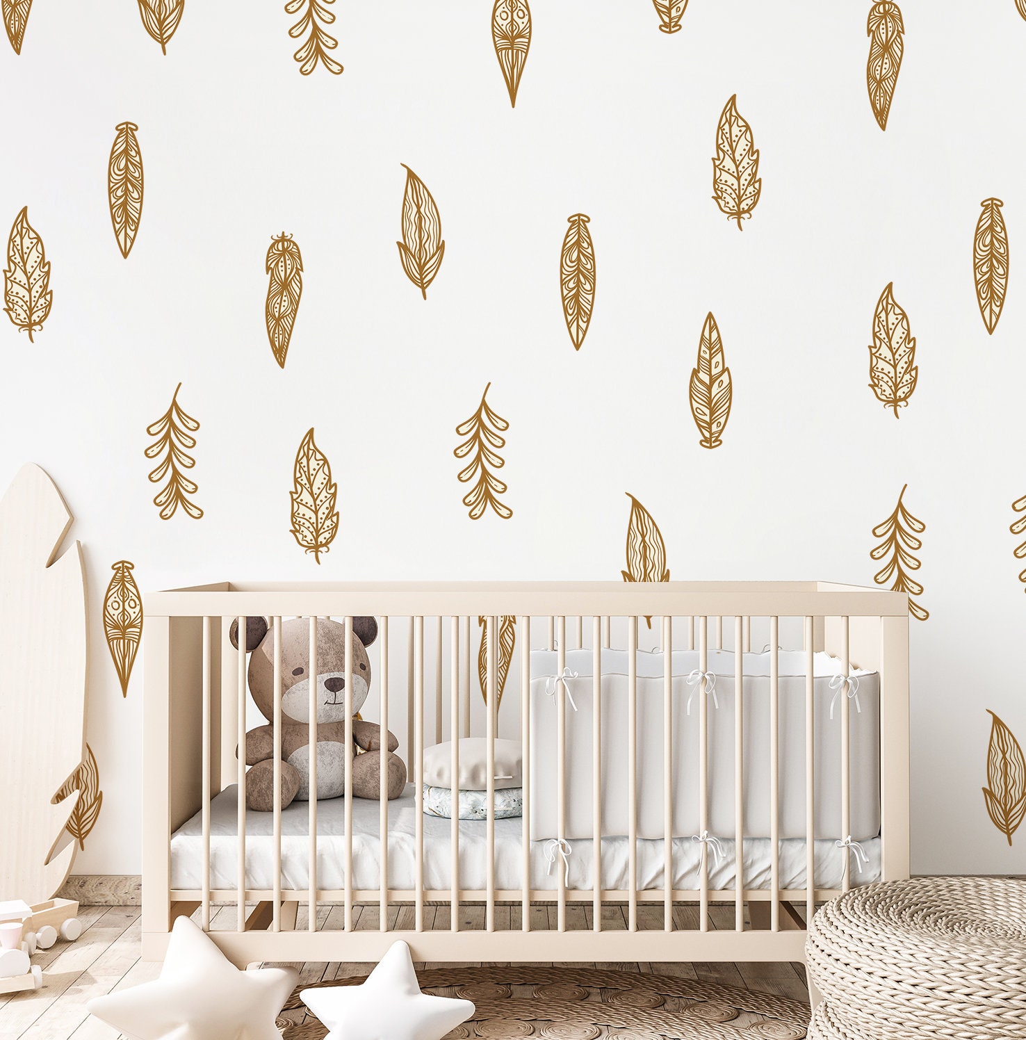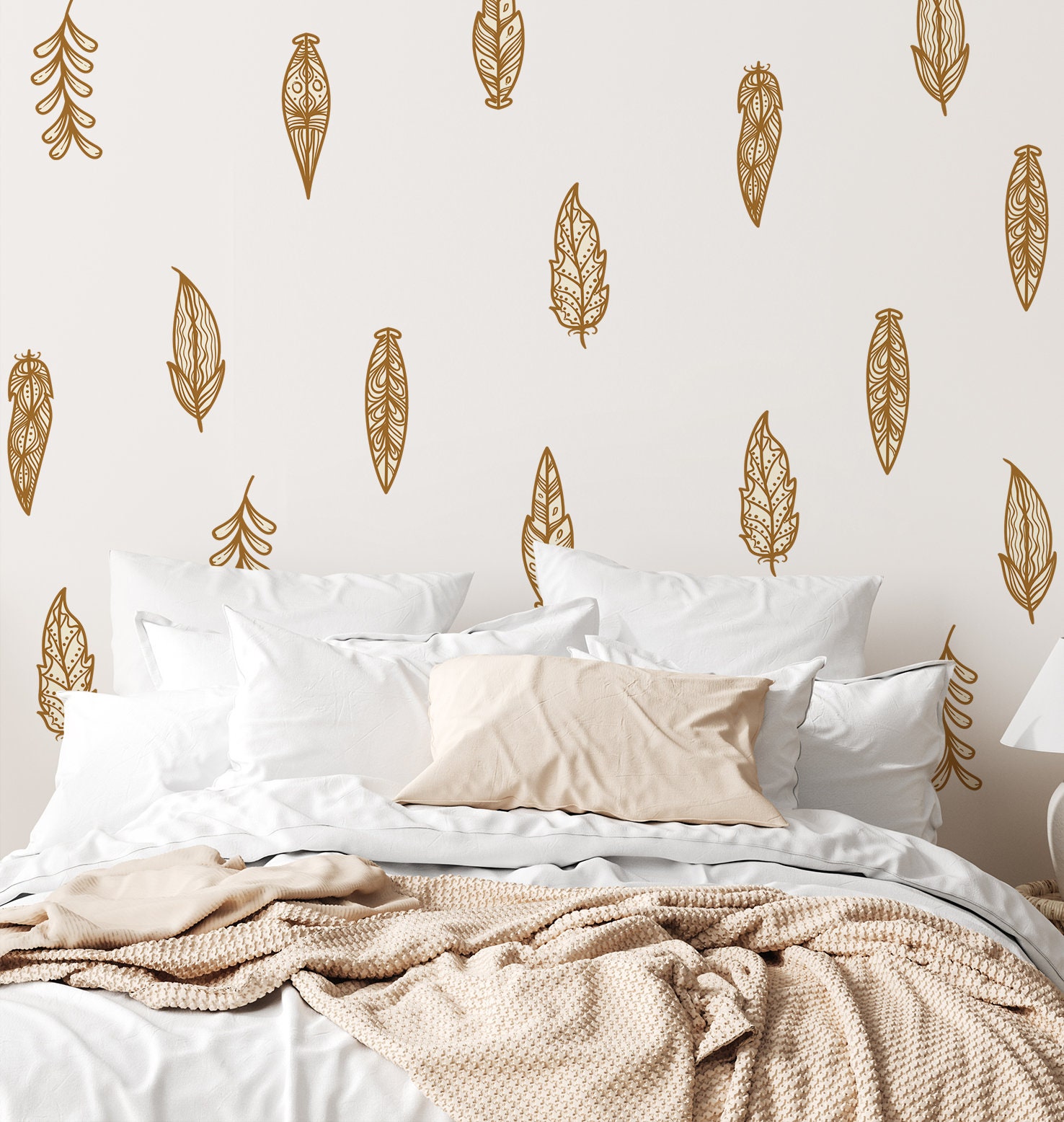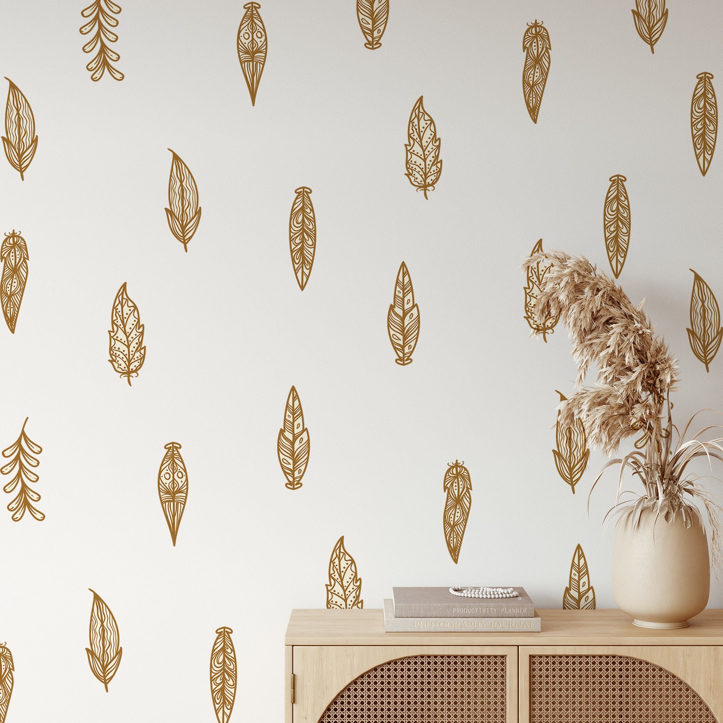 Boho Nálepky na stenu. Boho s perím (3) – Samolepiace dekorácie na stenu