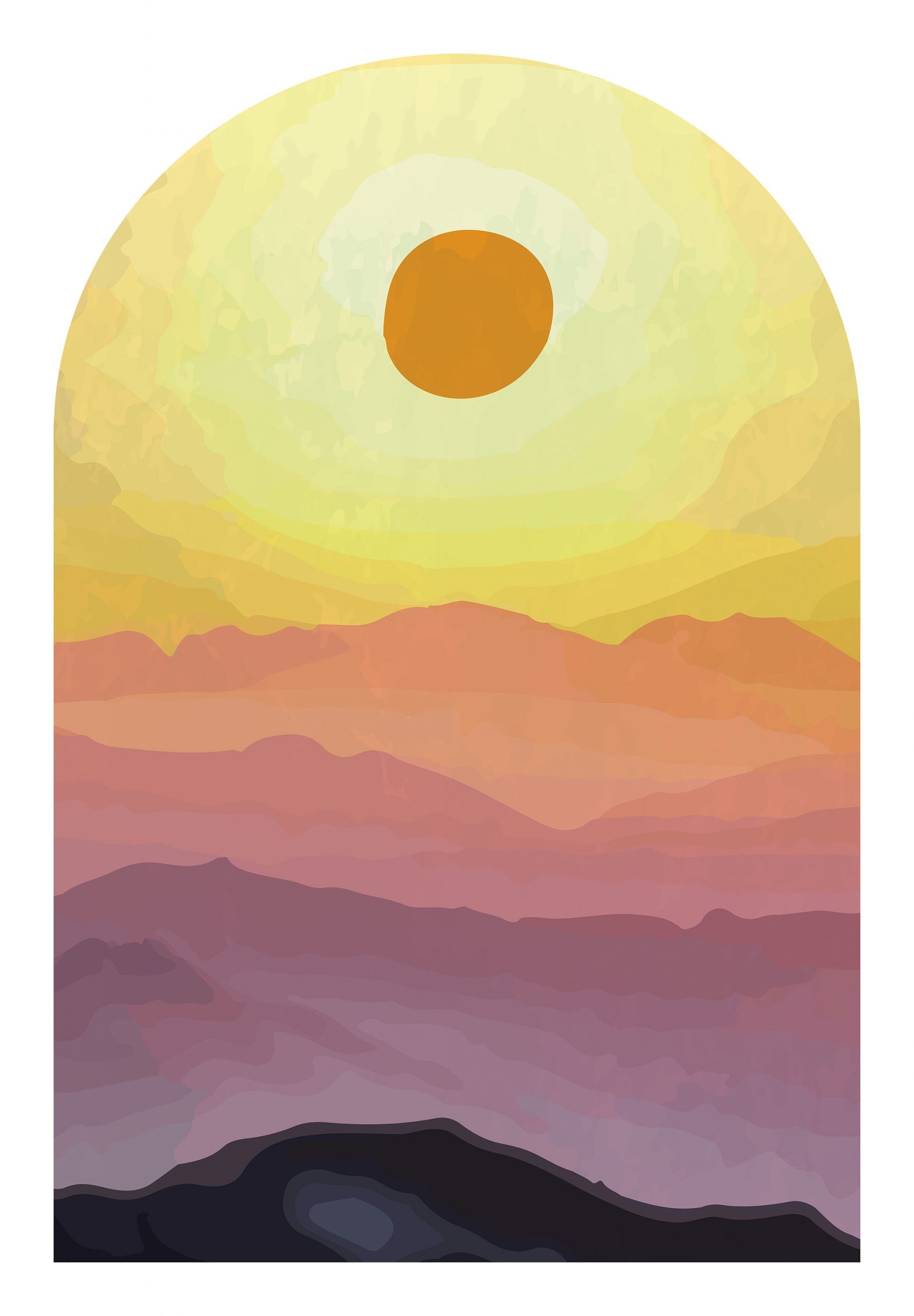Vytvorte si svoj vysnívaný domov s našou minimalistickou nálepkou na stenu v štýle BOHO, ktorá je vhodná do každej miestnosti. Kombinácia upokojujúcich odtieňov oranžovej a fialovej farby premení každú miestnosť na oázu pokoja.