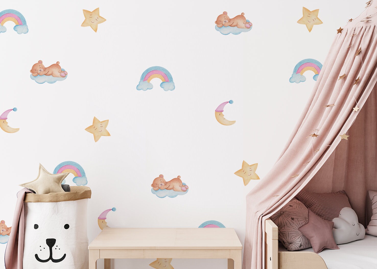 Vytvorte dokonalý priestor pre svoje dieťa pomocou našich farebných samolepiek na stenu vhodných najmä do detskej izby. Nálepka na stenu je jedným z najnovších trendov v oblasti bytových dekorácií. Samolepky si môžete rozmiestniť jednotlivo po celej stene podľa vlastných predstáv. Ľahko sa aplikujú a nezanechávajú na stenách stopy!