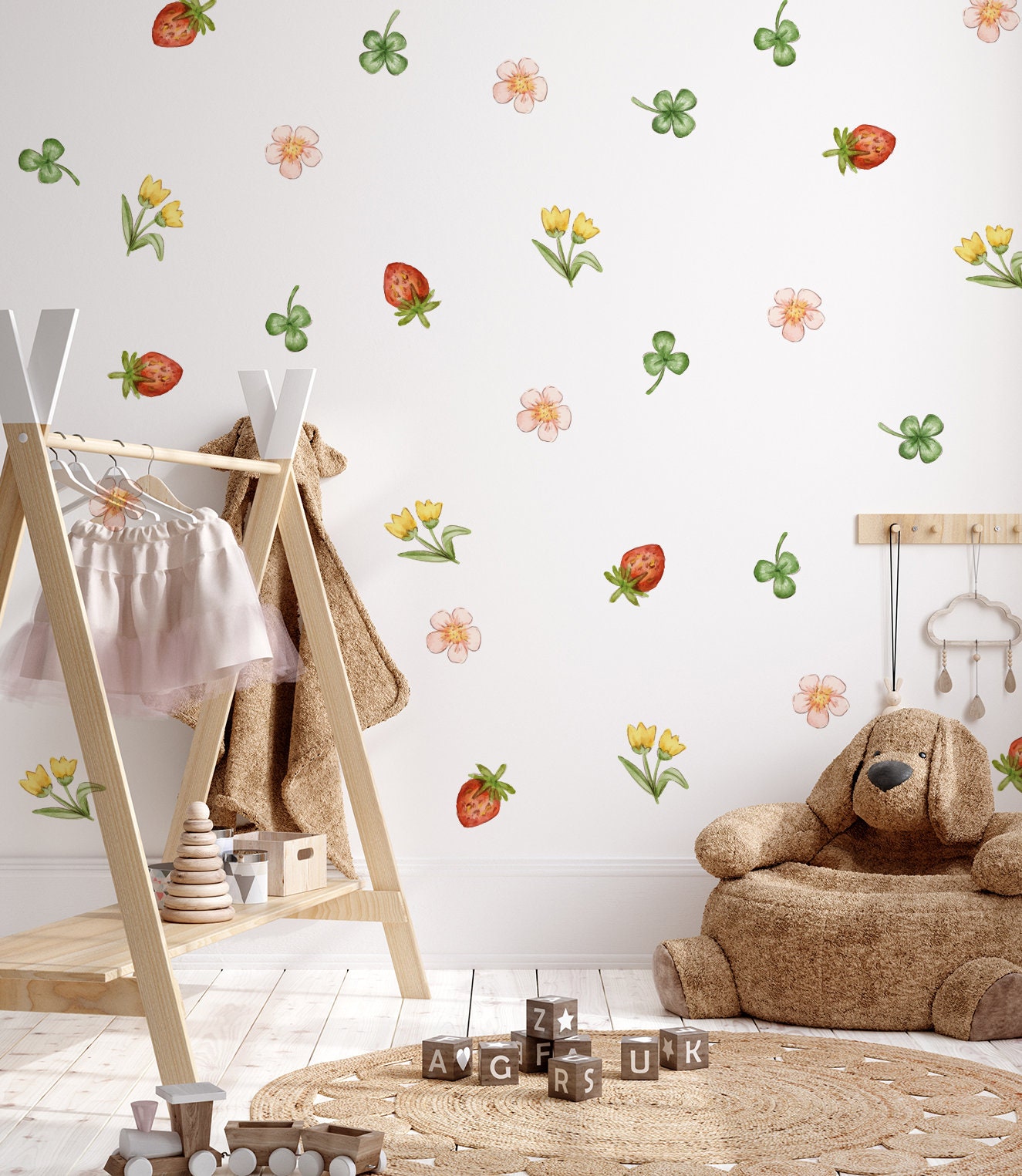 Kvetinové nálepky na stenu. Lesné kvetinové (2) – Kvetinové nálepky na stenu do interiéru