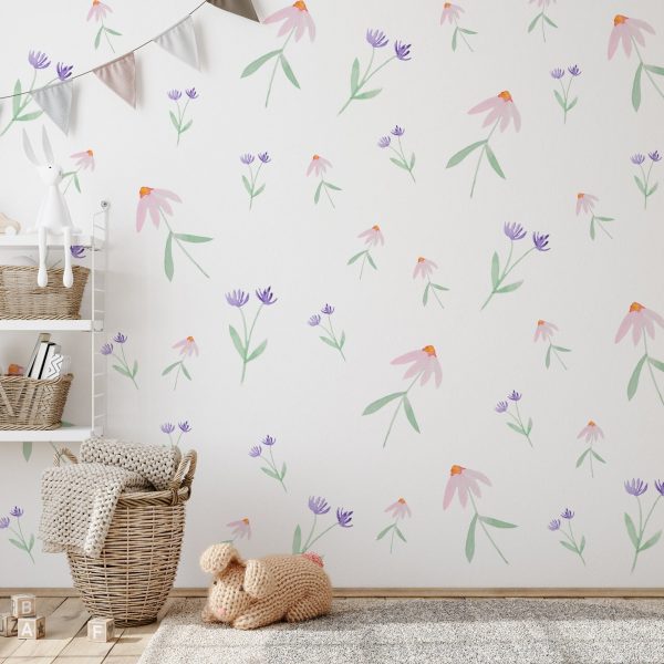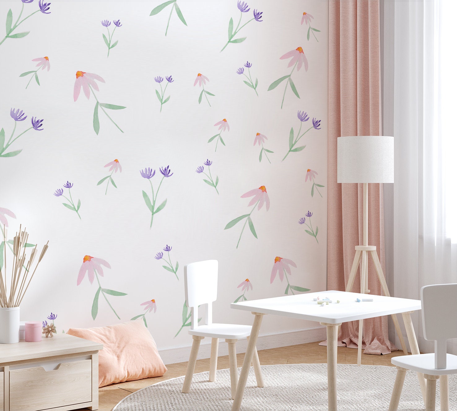 Kvetinové nálepky na stenu. Pastelové kvety (12) – Kvetinové nálepky na stenu do interiéru
