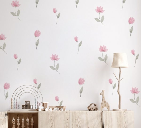 Kvetinové nálepky na stenu. Pastelové kvety (16) – Kvetinové nálepky na stenu do interiéru