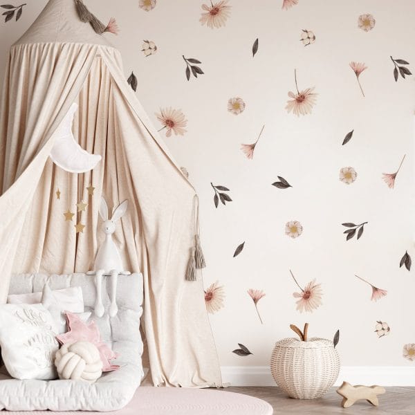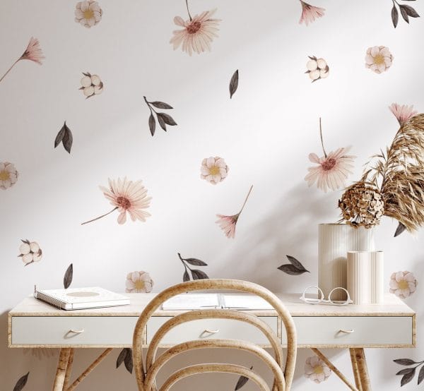 Kvetinové nálepky na stenu. Pastelové kvety (2) – Kvetinové nálepky na stenu do interiéru