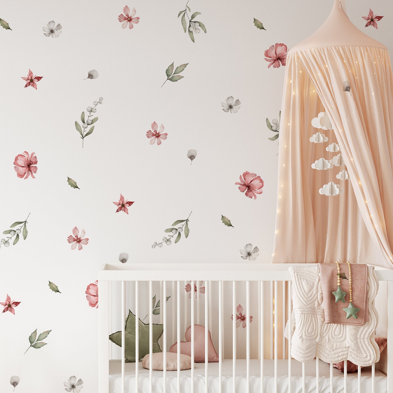 Kvetinové nálepky na stenu. Pastelové kvety (27) – Kvetinové nálepky na stenu do interiéru