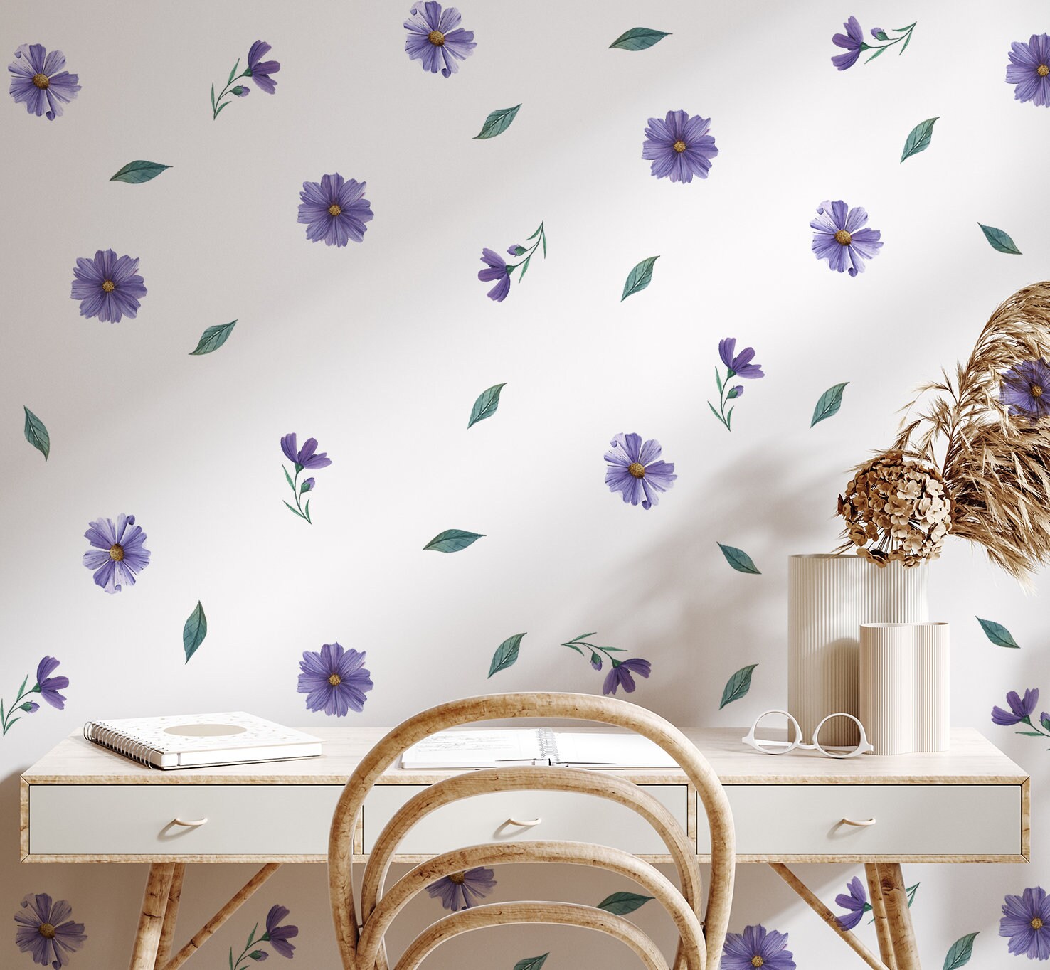 Kvetinové nálepky na stenu. Pastelové kvety (48) – Kvetinové nálepky na stenu do interiéru