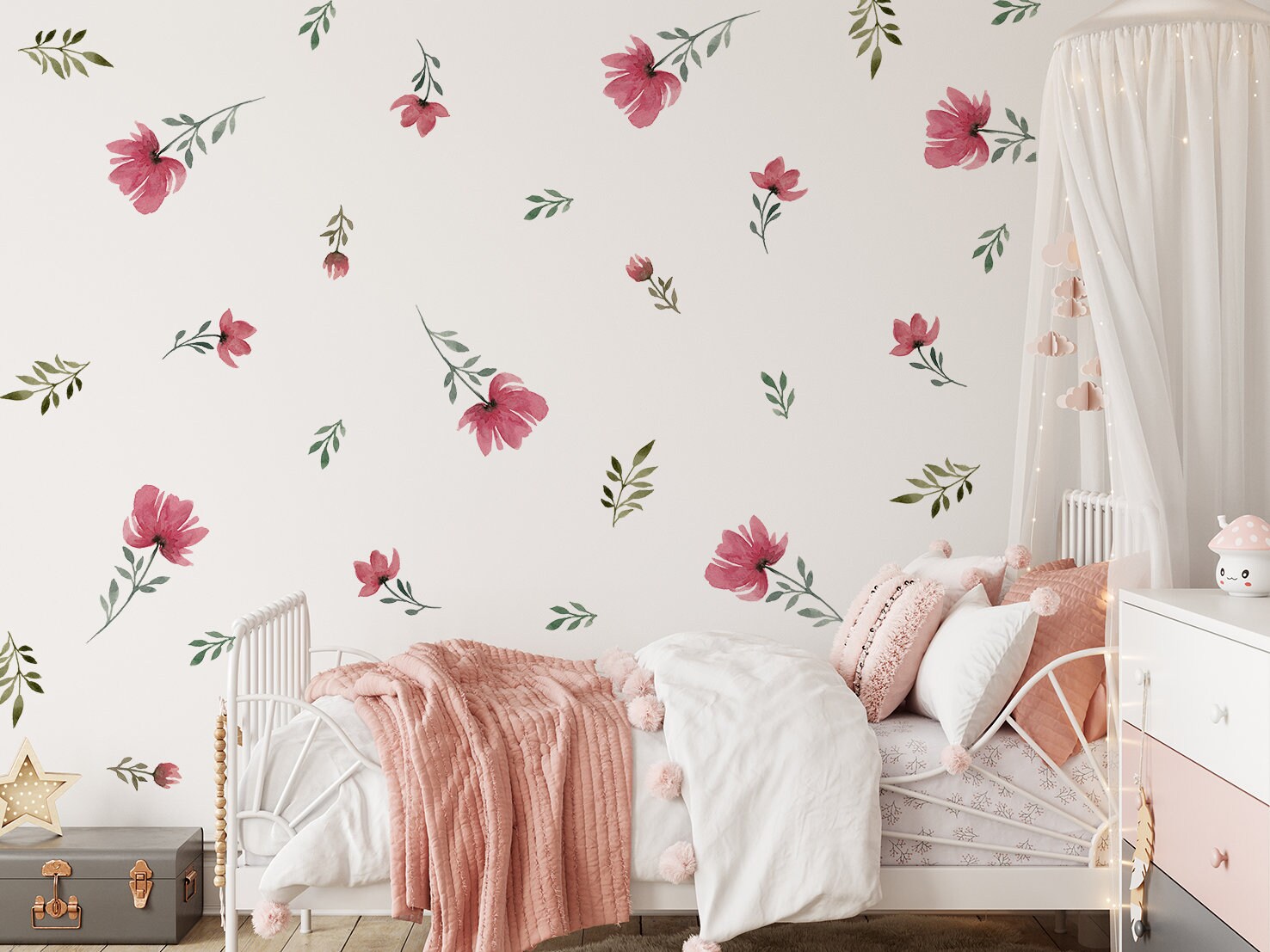 Vytvorte si domov snov s našimi minimalistickými nálepkami na stenu s lúčnymi kvetmi vhodnými do každej miestnosti. Perfektne bude vyzerať aj v obývacej izbe, kancelárii alebo detskej izbe. Nálepka na stenu je jedným z najnovších trendov v oblasti bytových dekorácií. Nálepky si môžete rozmiestniť jednotlivo po celej stene podľa vlastných predstáv. Ľahko sa aplikujú a nezanechávajú na stenách stopy!