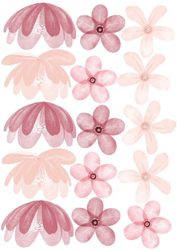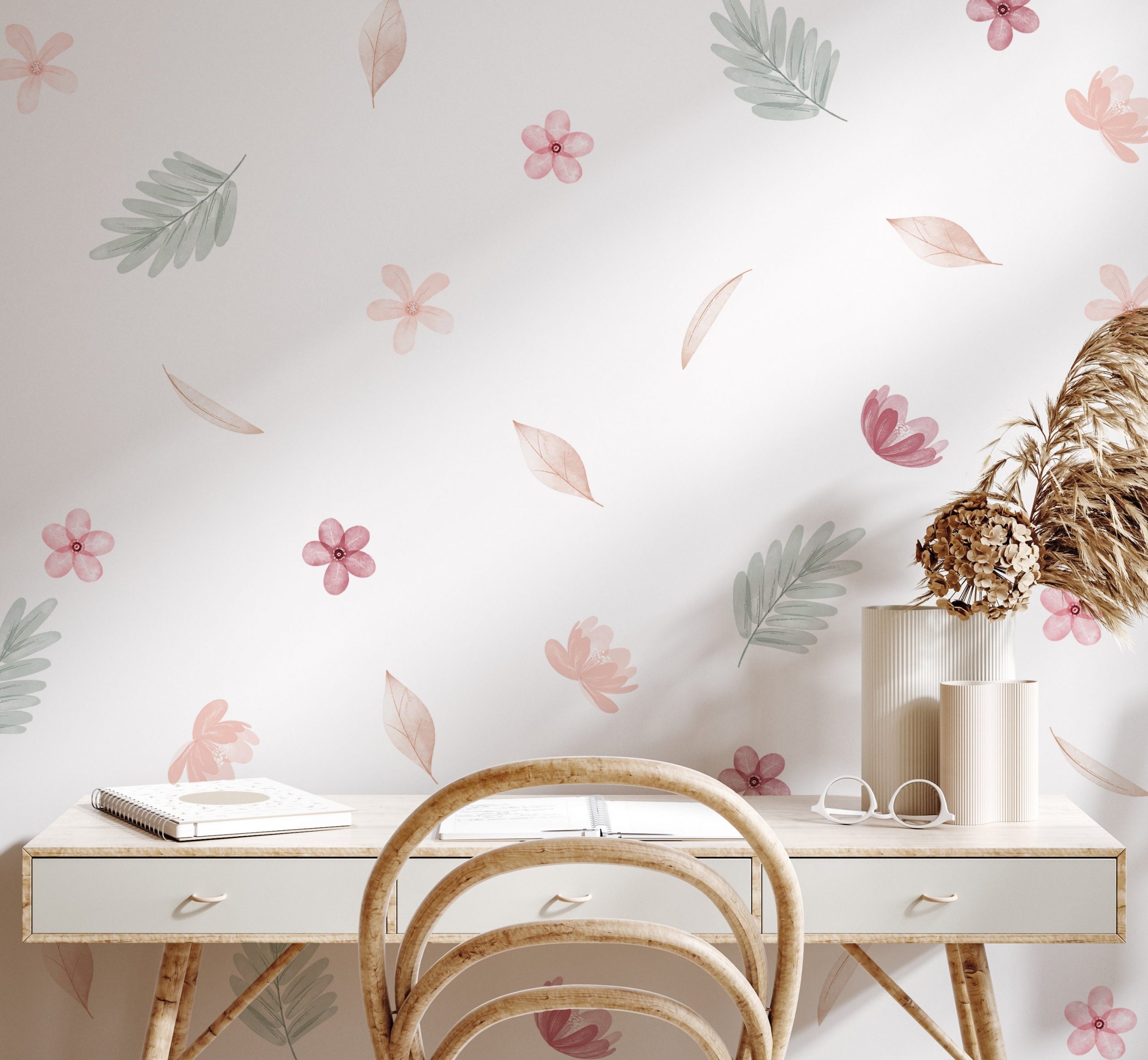 Kvetinové nálepky na stenu. Pastelové kvety (6) – Kvetinové nálepky na stenu do interiéru