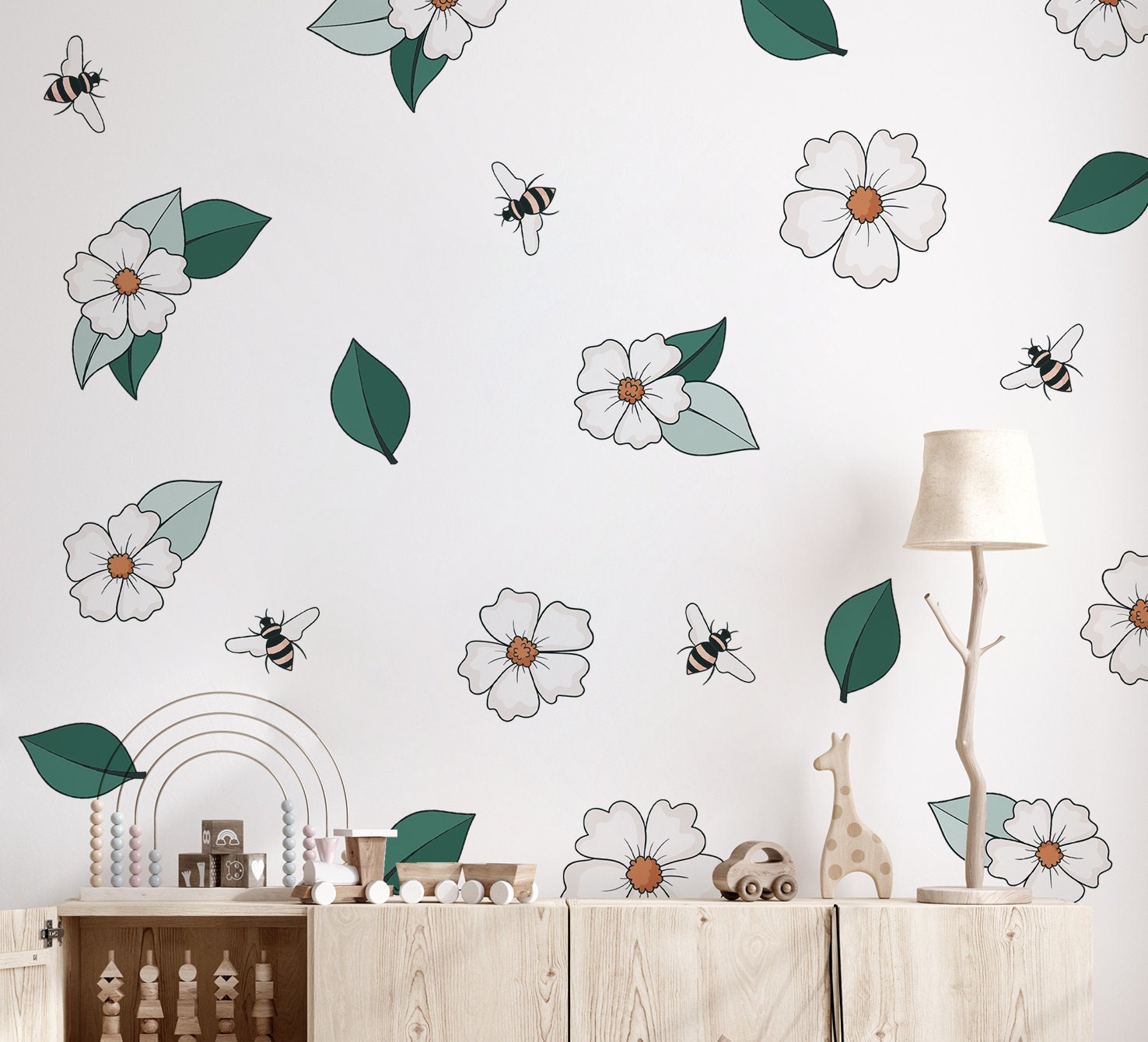 Kvetinové nálepky na stenu. Pastelové včely – Kvetinové nálepky na stenu do interiéru