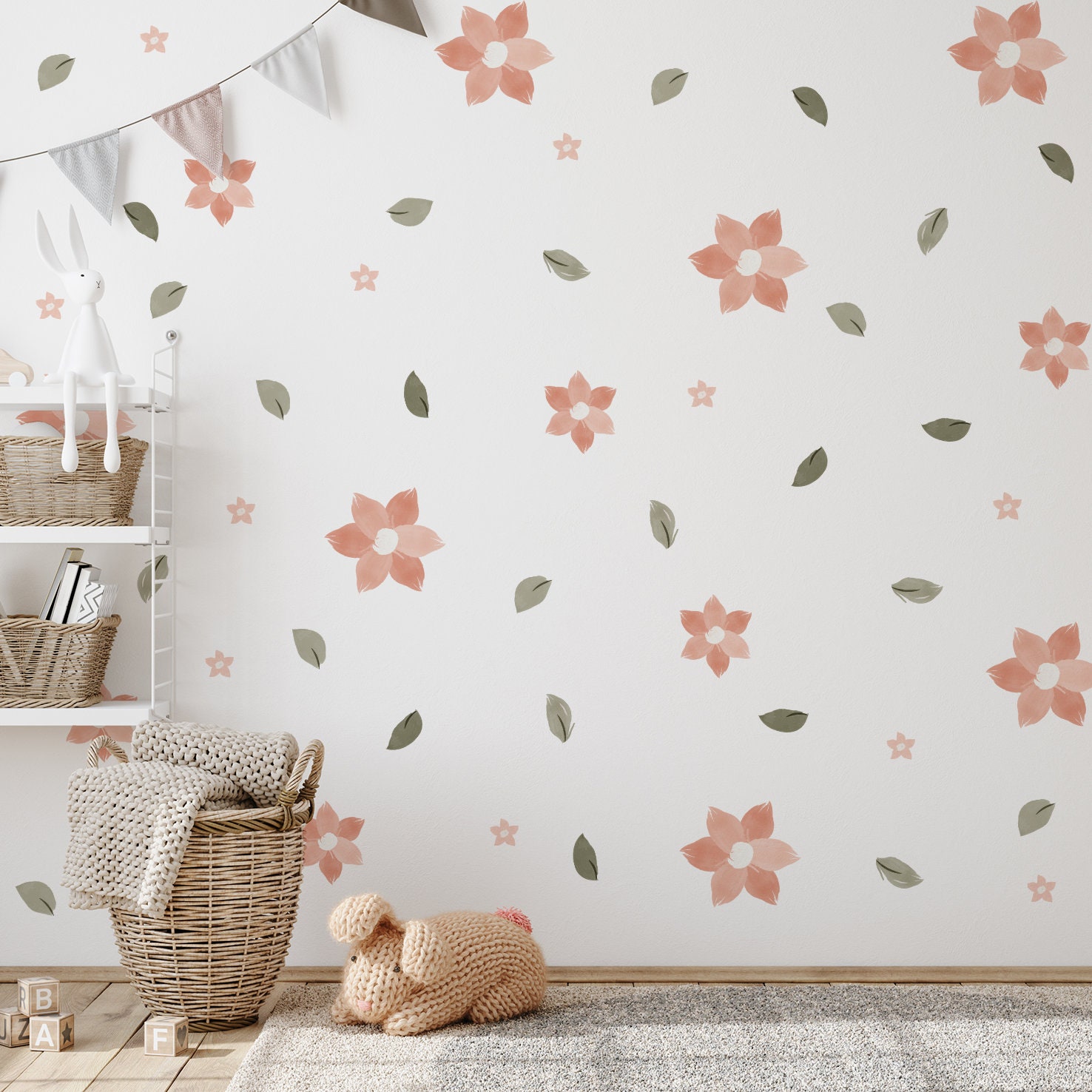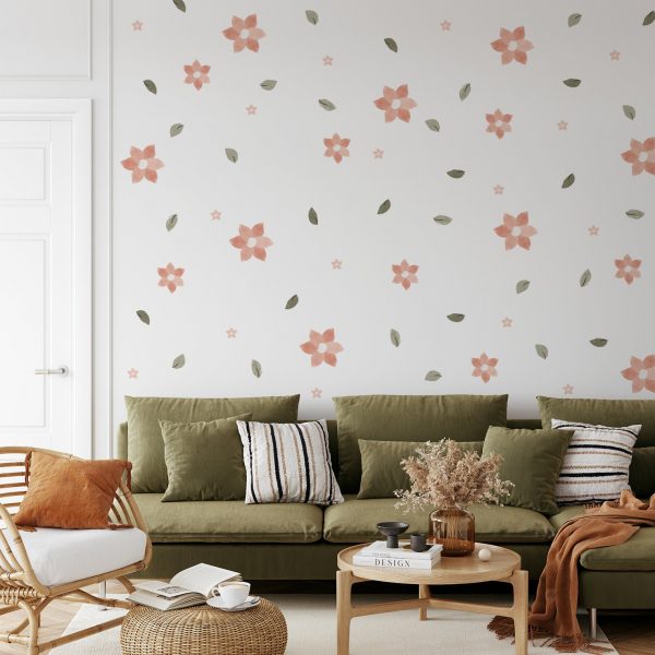 Kvetinové nálepky na stenu. S pastelovými kvetmi (5) – Kvetinové nálepky na stenu do interiéru