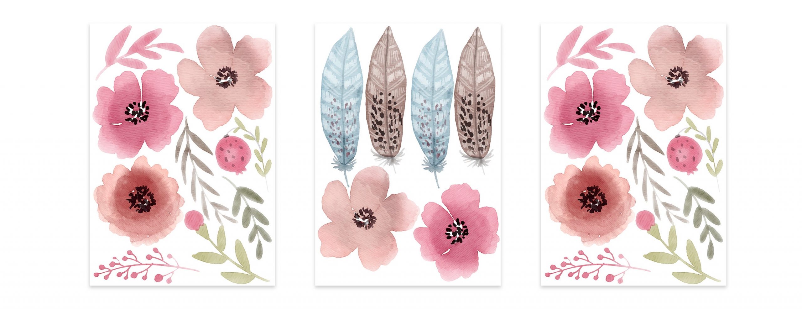 Kvetinové nálepky na stenu. V boho štýle (3) – Kvetinové nálepky na stenu do interiéru
