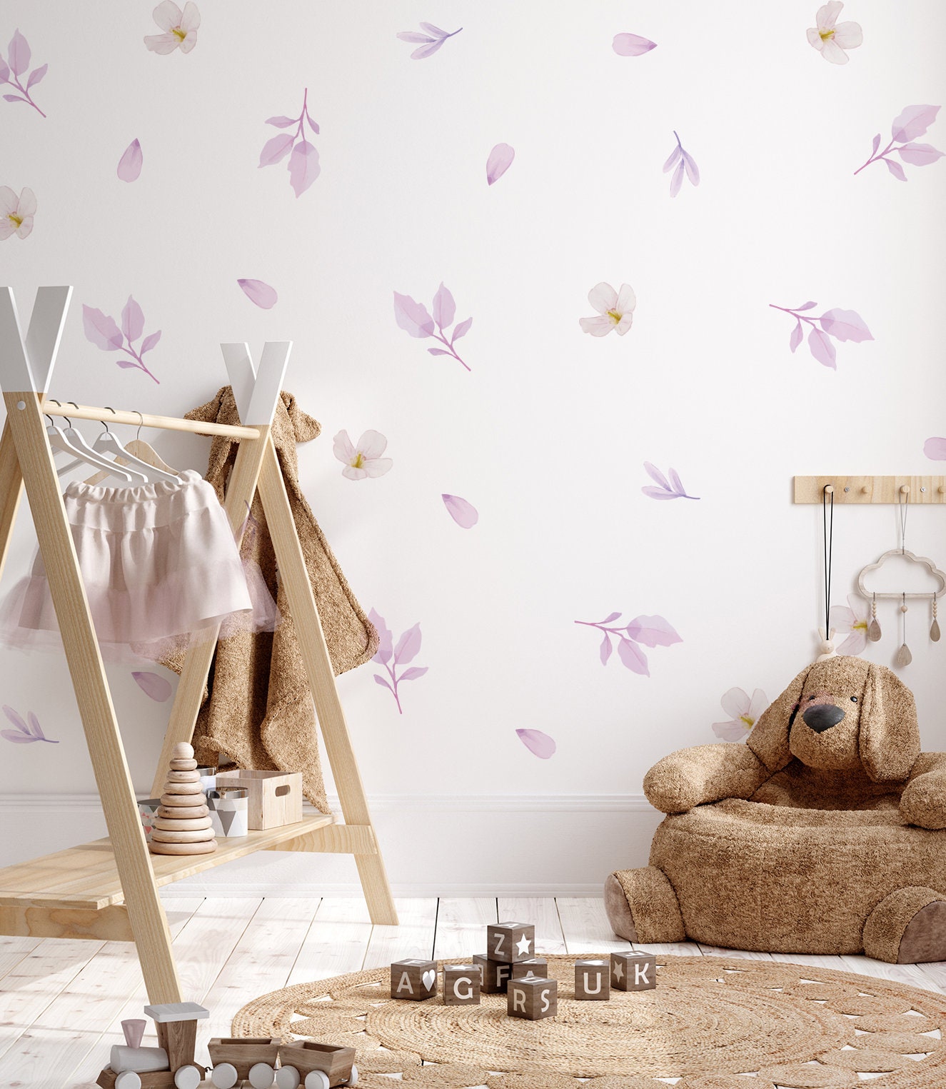 Kvetinové samolepky na stenu. Akvarelová kvetinová – Kvetinové nálepky na stenu do interiéru