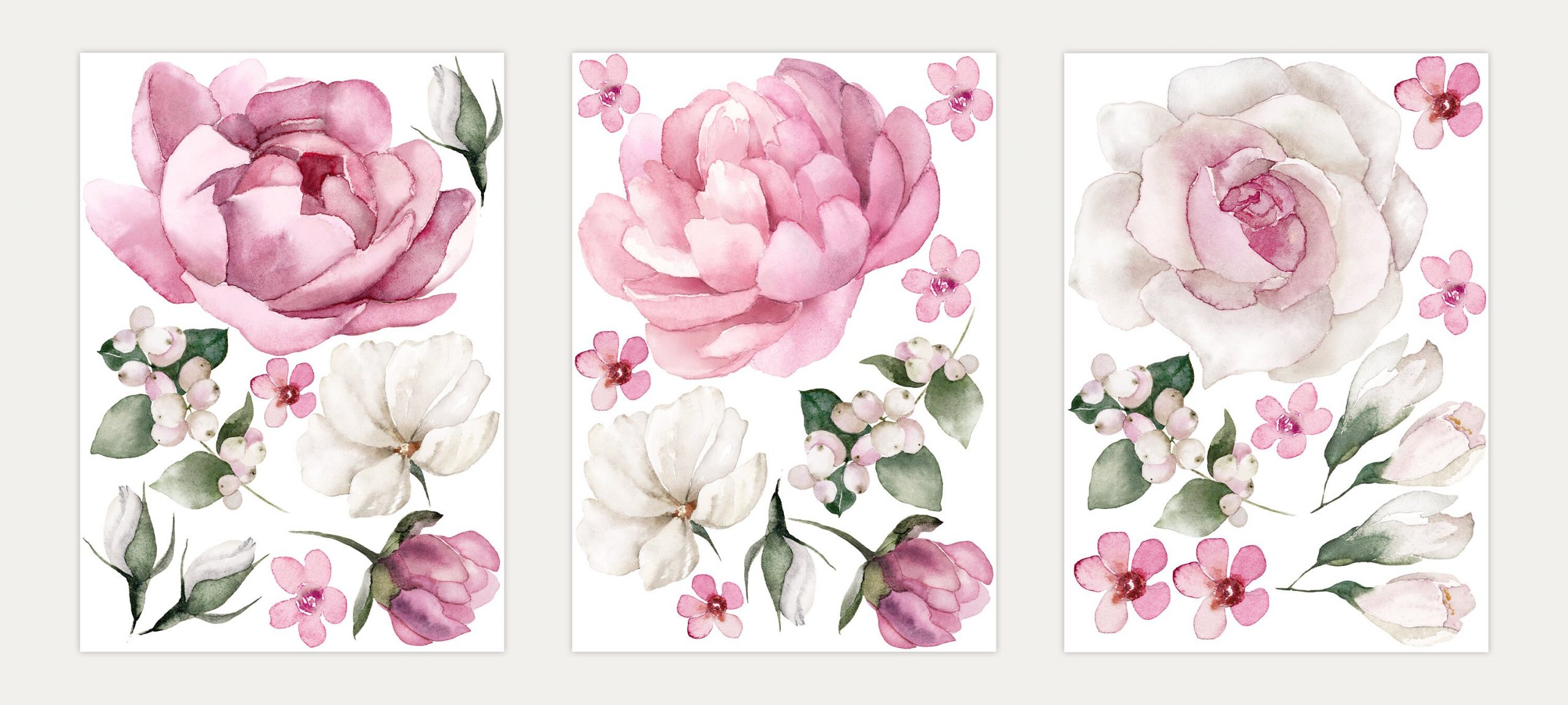Elegantné kvetinové nálepky pre útulný domov. Kvalitná tlač, jednoduchá aplikácia.
