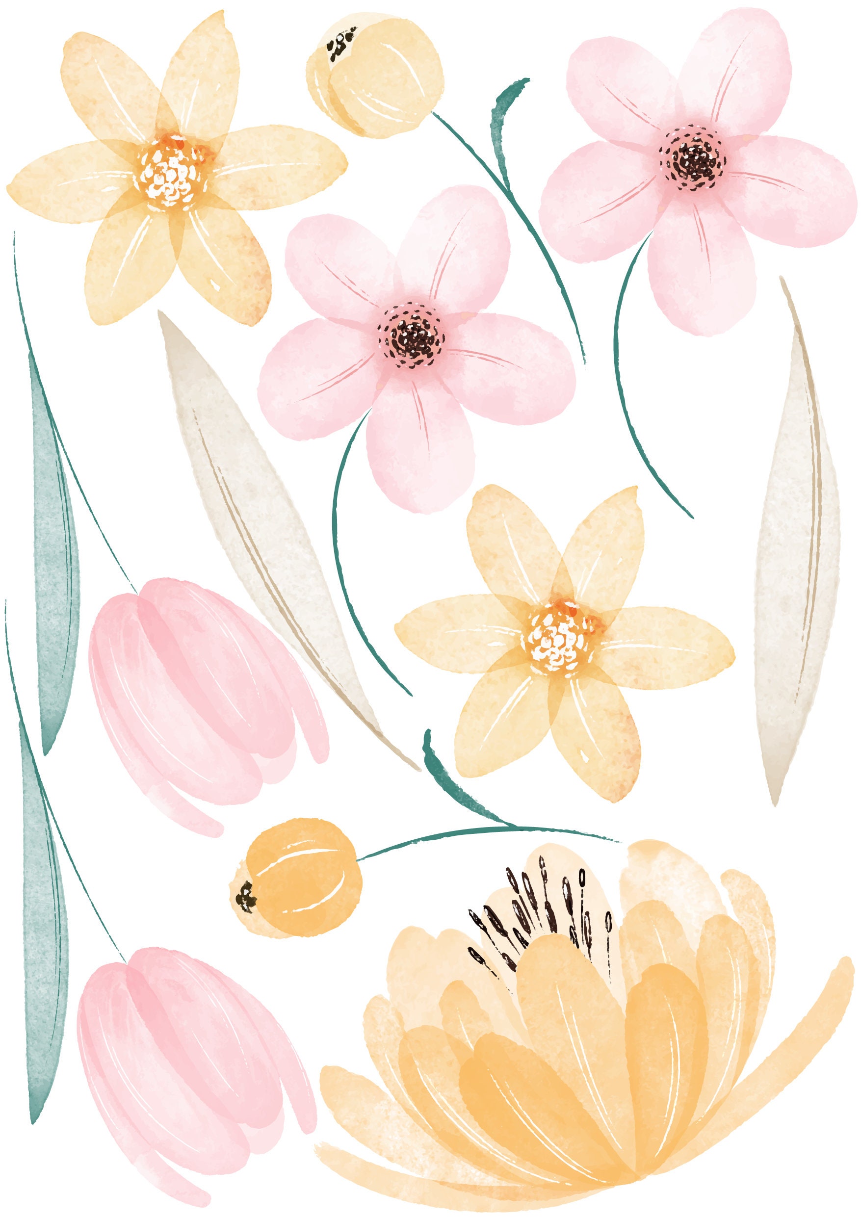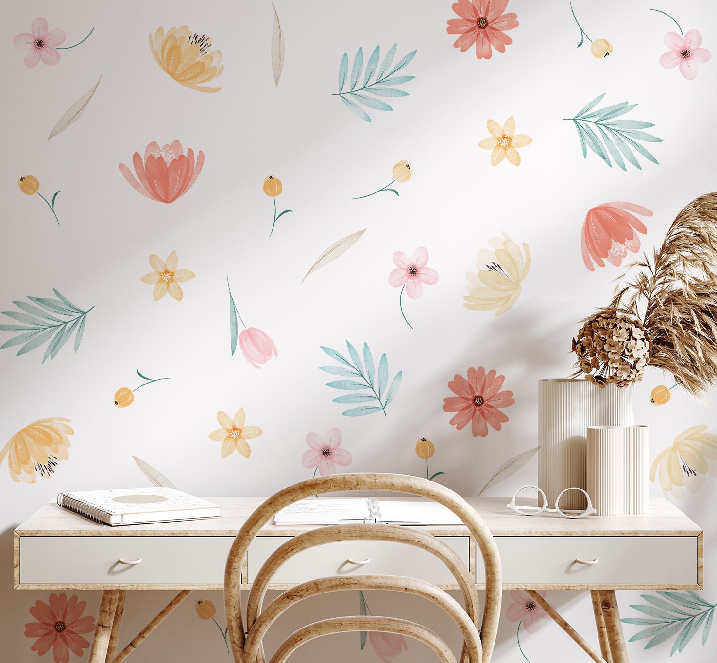 Vytvorte si domov snov s našimi minimalistickými nálepkami na stenu s lúčnymi kvetmi vhodnými do každej miestnosti. Perfektne bude vyzerať aj v obývacej izbe, kancelárii alebo detskej izbe. Nálepka na stenu je jedným z najnovších trendov v oblasti bytových dekorácií. Nálepky si môžete rozmiestniť jednotlivo po celej stene podľa vlastných predstáv. Ľahko sa aplikujú a nezanechávajú na stenách stopy!