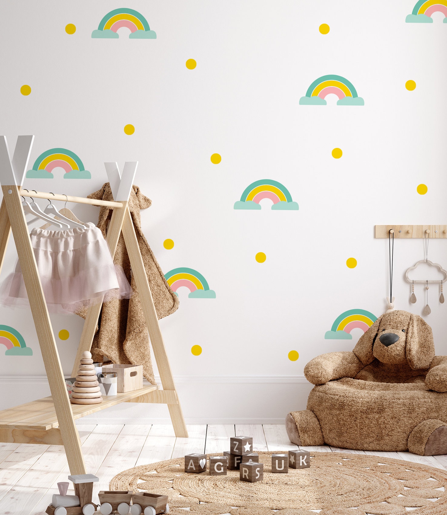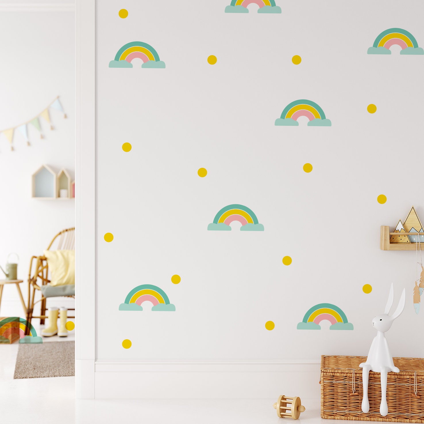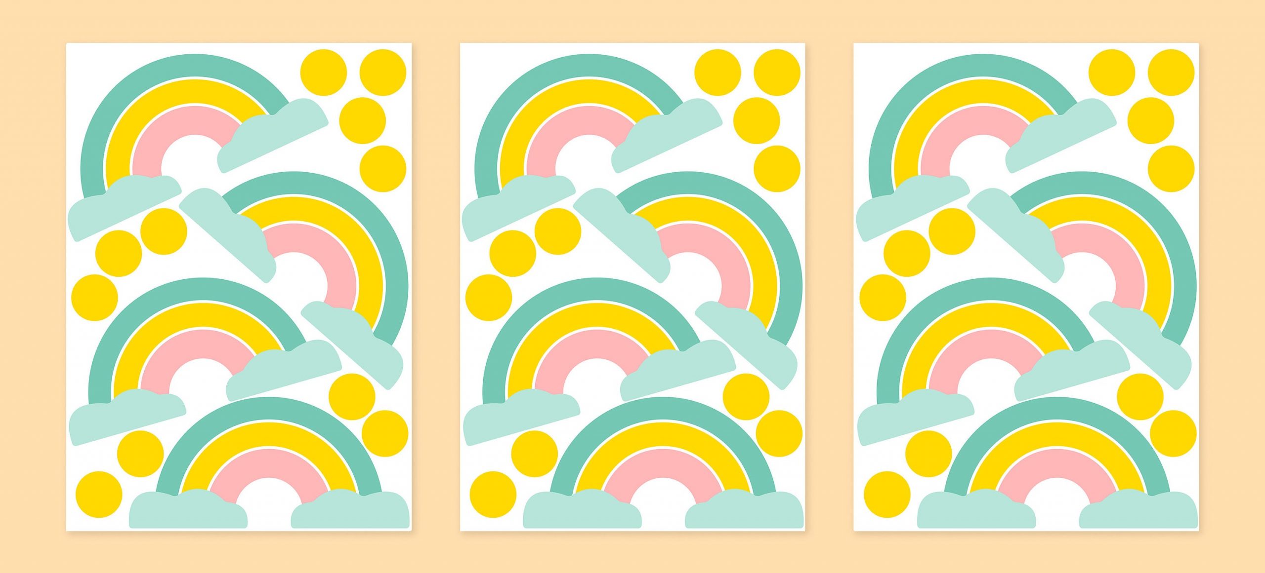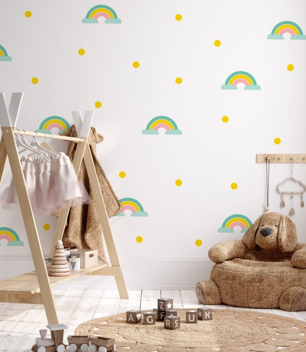 Nálepka na stenu dúha. Farebné dúhy a bodky – Samolepiace dekorácie na stenu