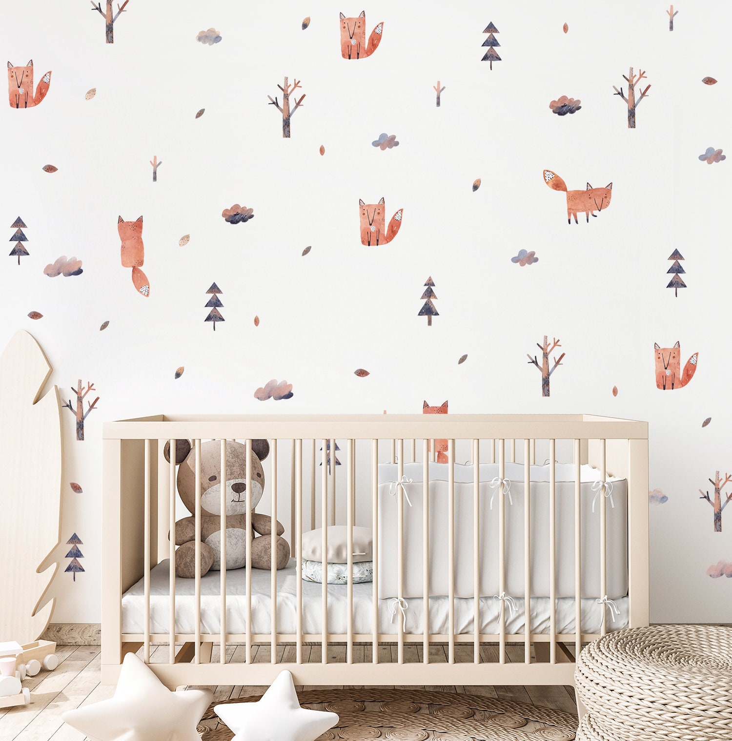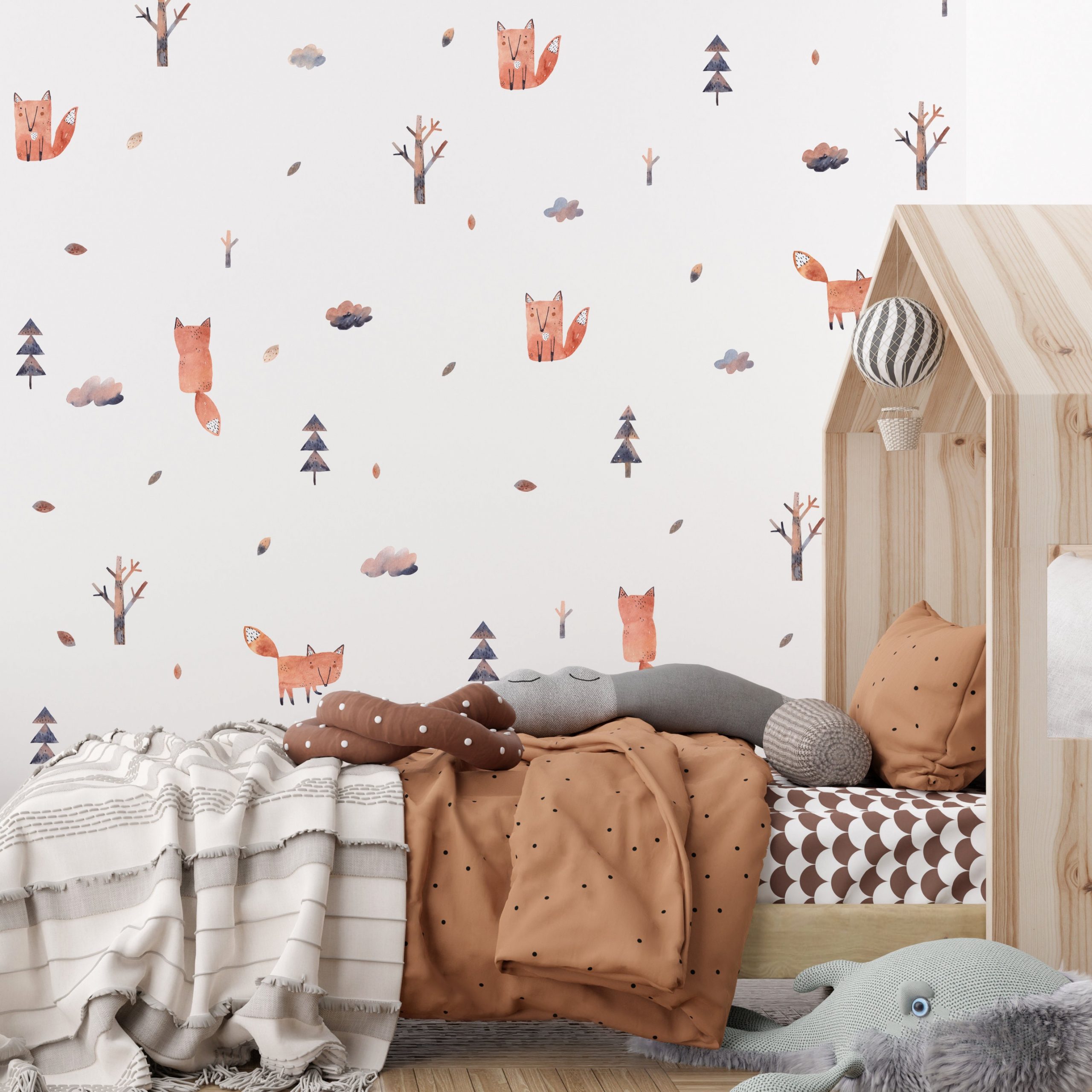 Nálepky na stenu detskej izby. Akvarelové líšky – Samolepiace dekorácie na stenu