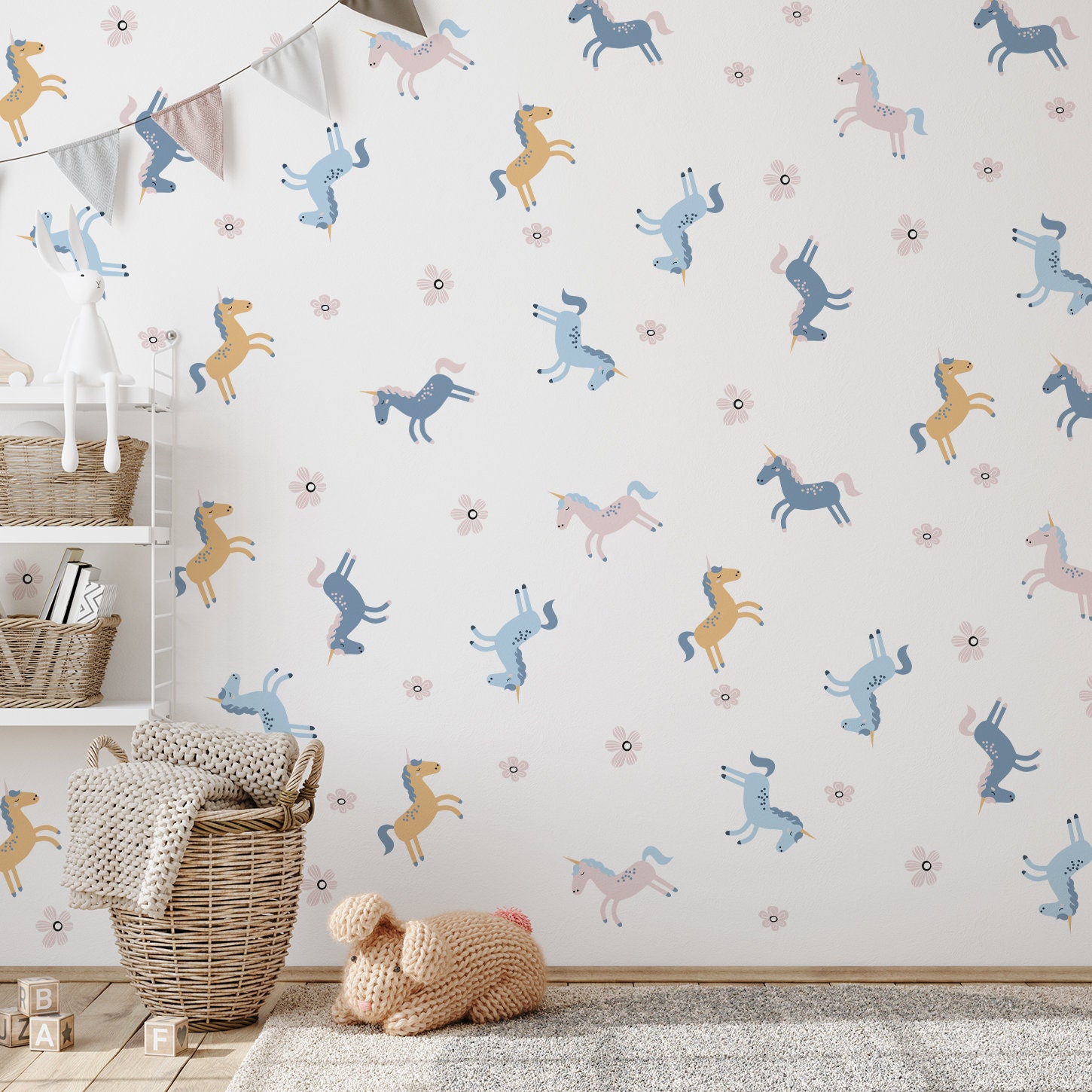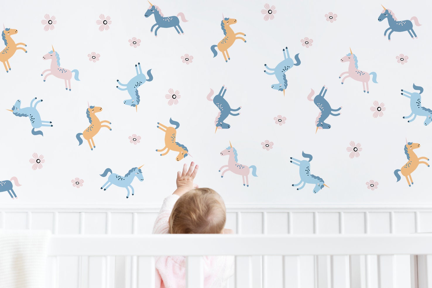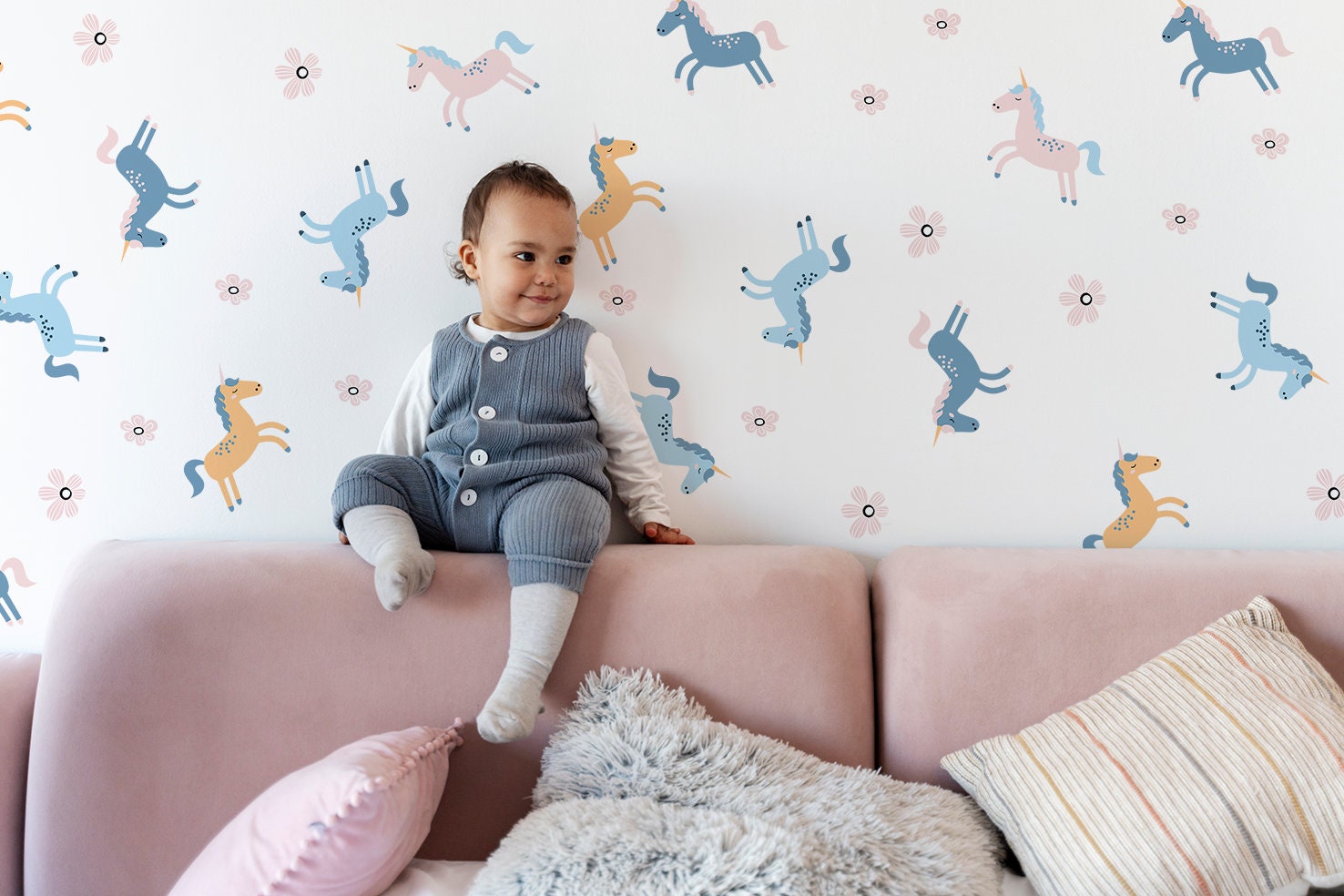 Nálepky na stenu jednorožec. Pastelové kvety – Kvetinové nálepky na stenu do interiéru