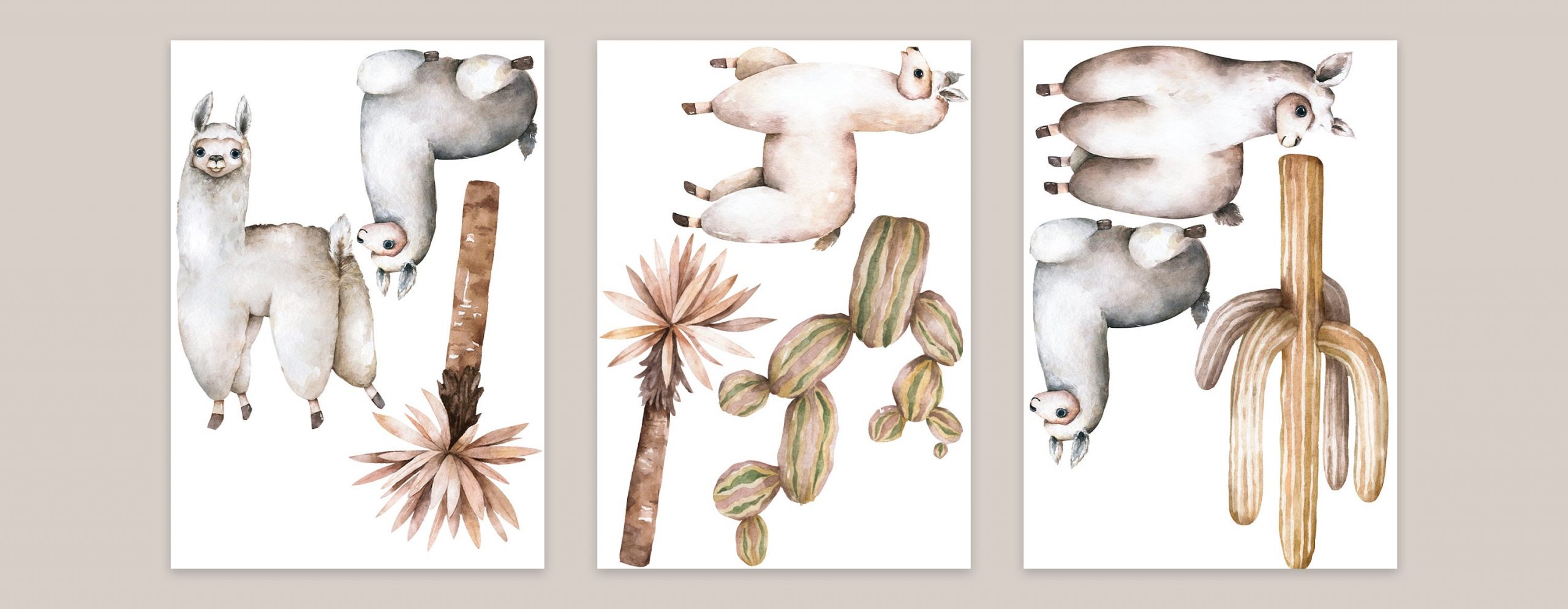 Nálepky na stenu Lama. Zábavné Lamy – Samolepiace dekorácie na stenu