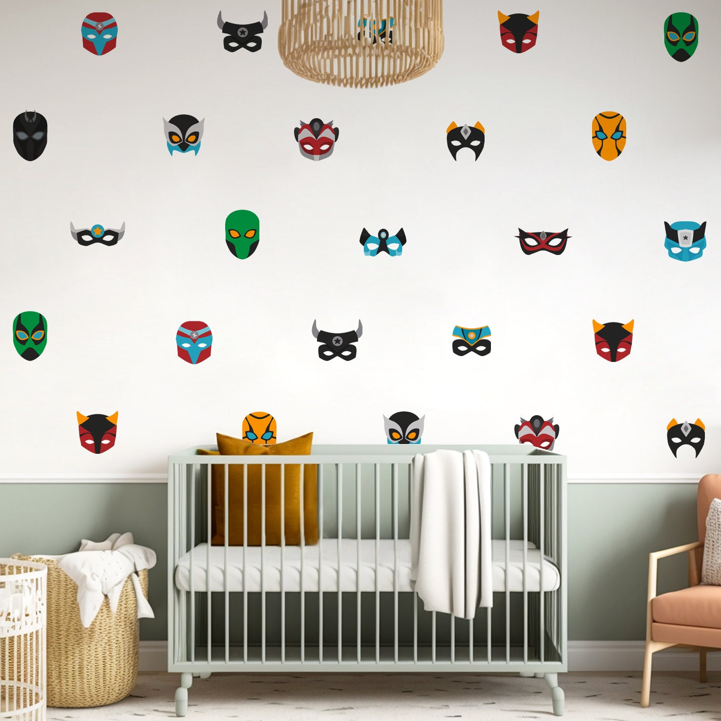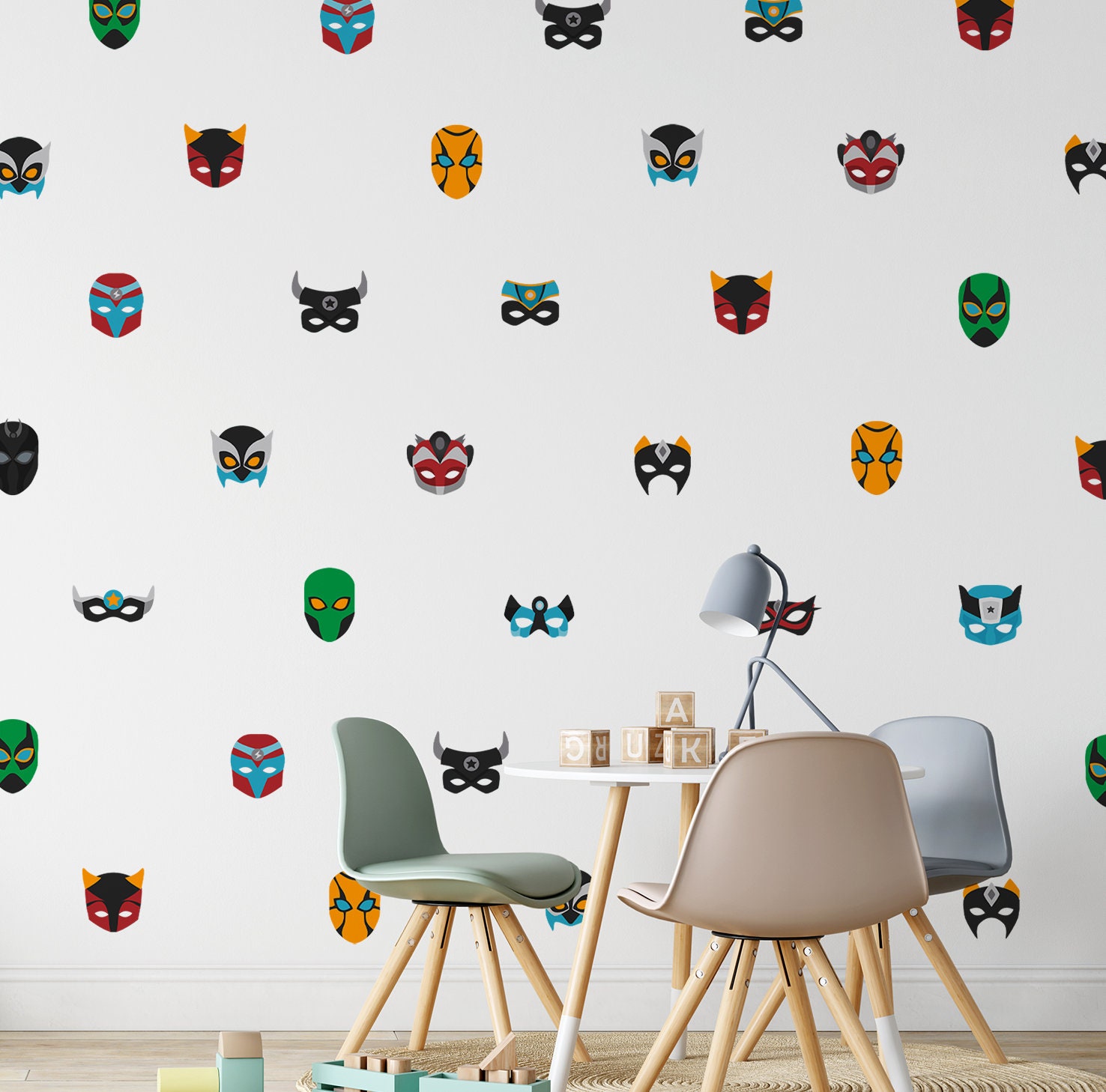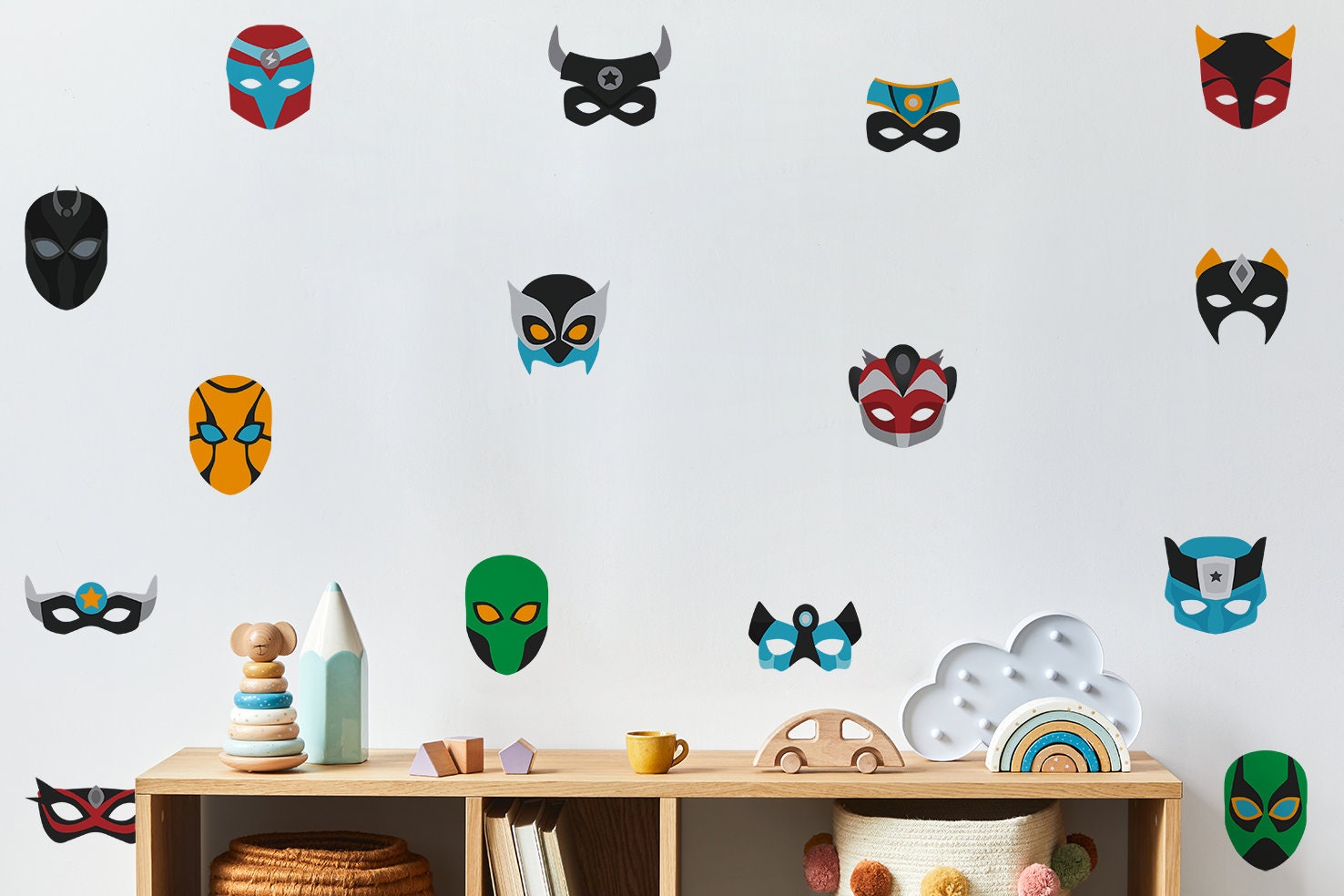 Vytvorte pre svoje dieťa dokonalý priestor pomocou našich samolepiek na stenu s maskami superhrdinov. Nálepka na stenu je jedným z najnovších trendov v oblasti bytových dekorácií. Samolepky si môžete rozmiestniť jednotlivo po celej stene podľa vlastných predstáv. Ľahko sa aplikujú a nezanechávajú na stenách stopy!