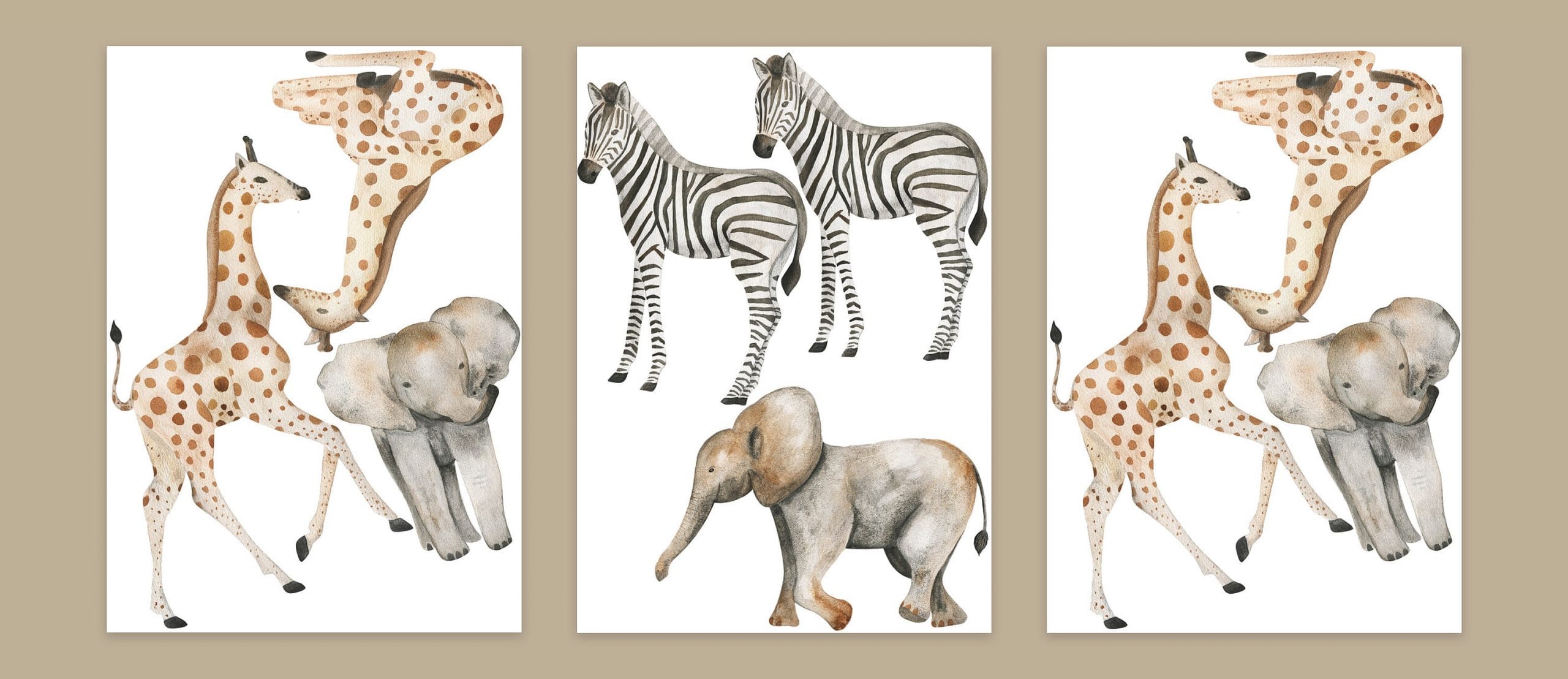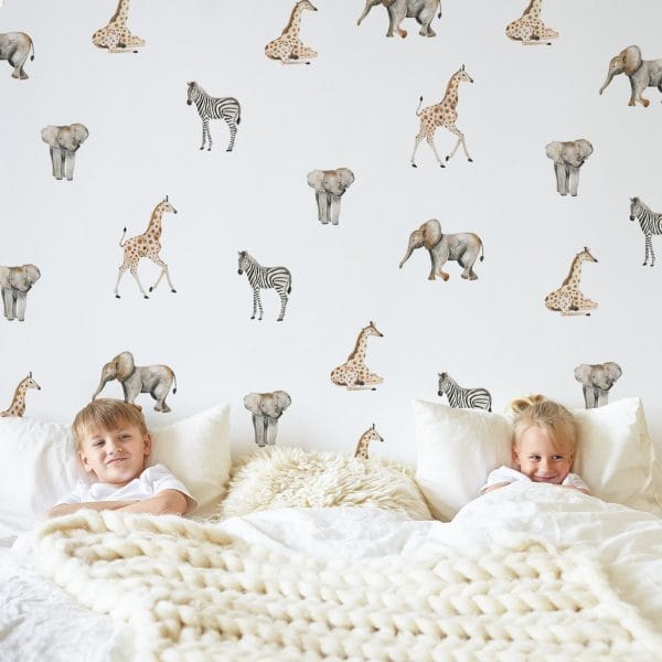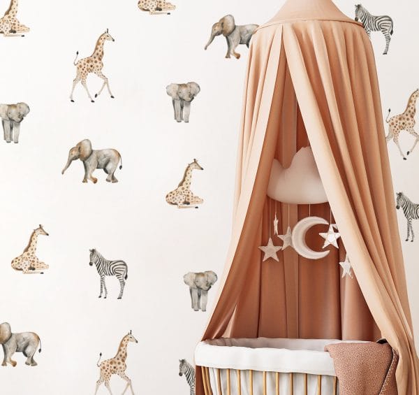 Nálepky na stenu Safari zvieratá. Divoké zvieratá – Hravé nálepky na stenu pre deti