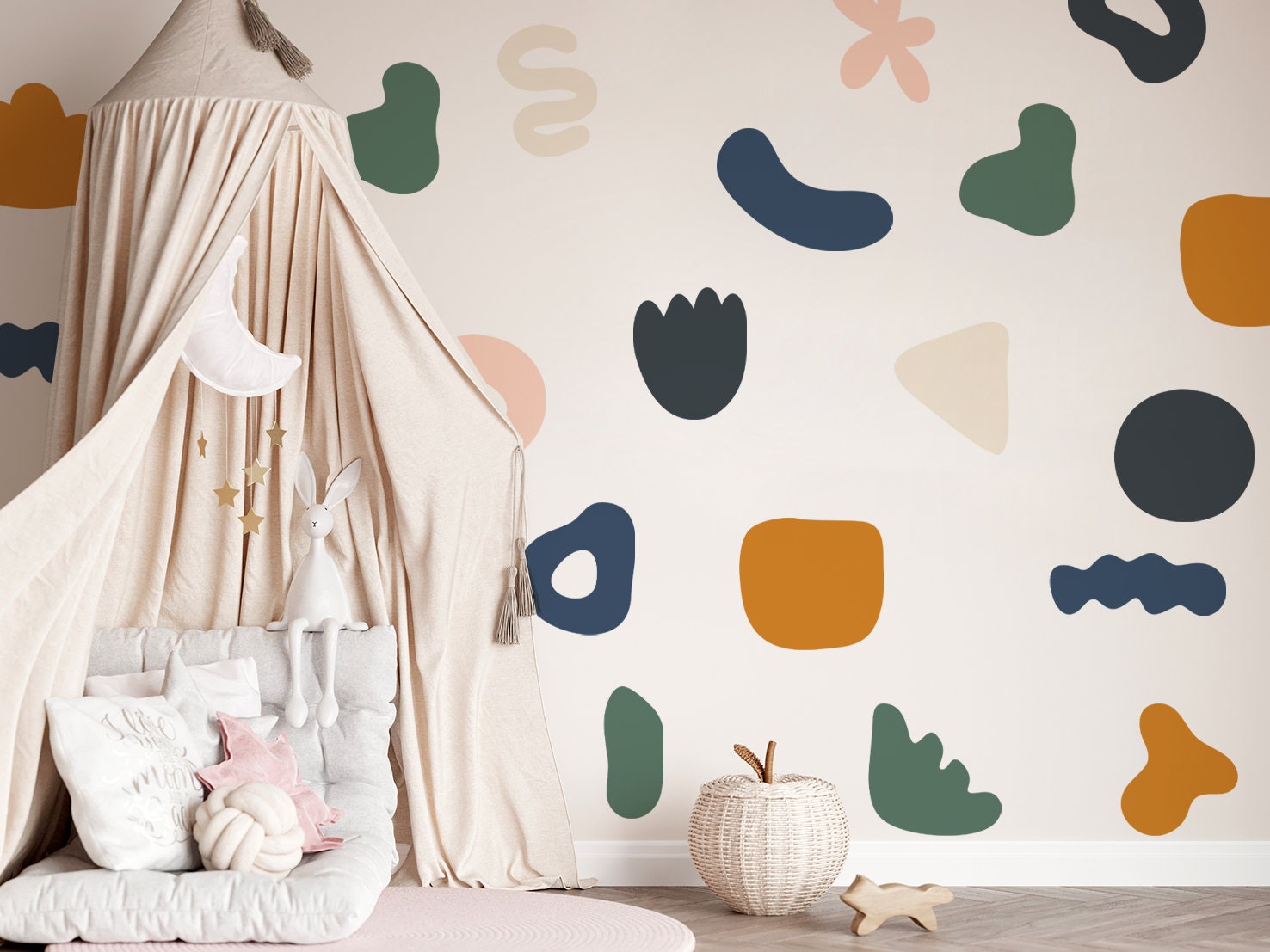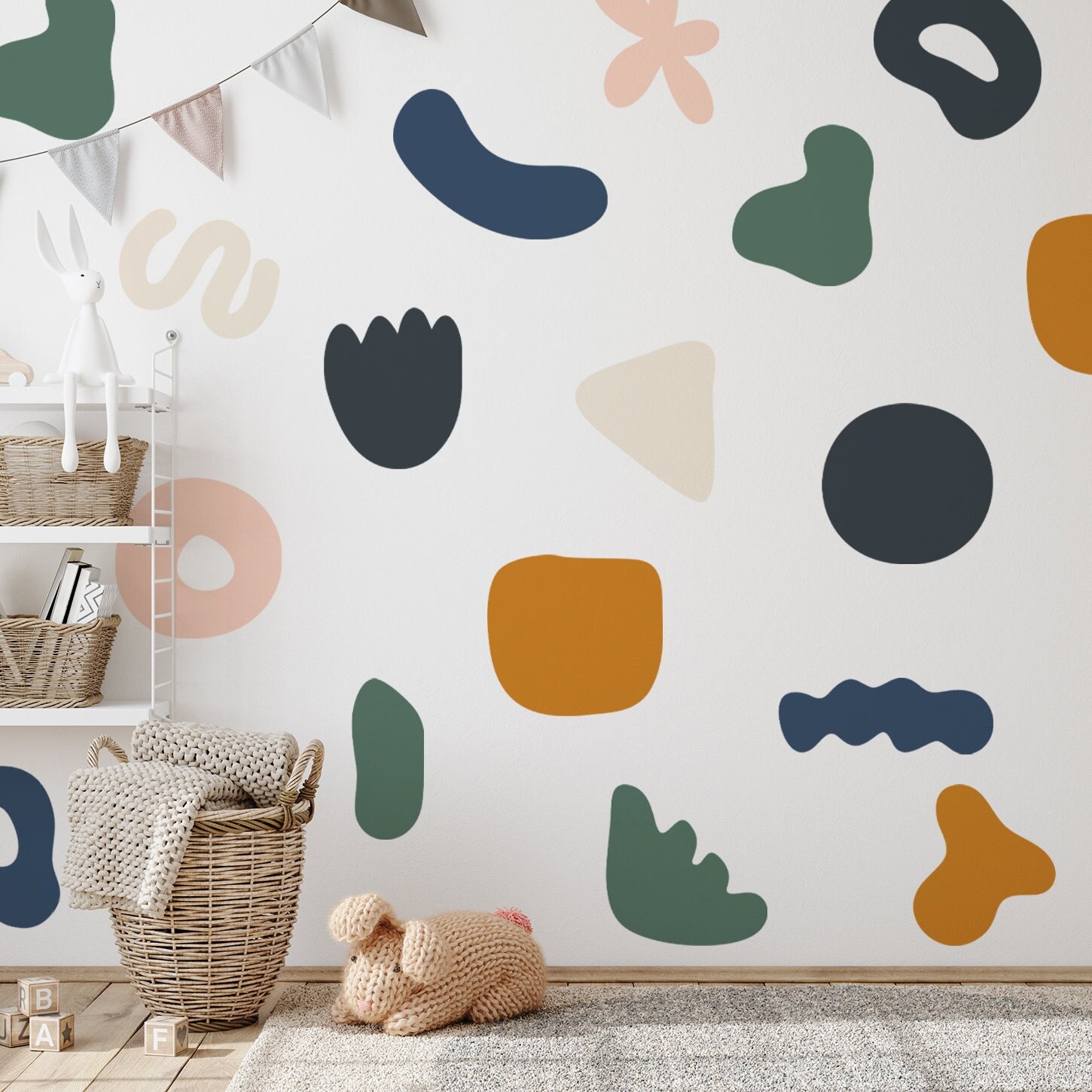 Obrovská sada nálepiek na stenu. Pastelové tvary farebné abstraktné – Samolepiace dekorácie na stenu