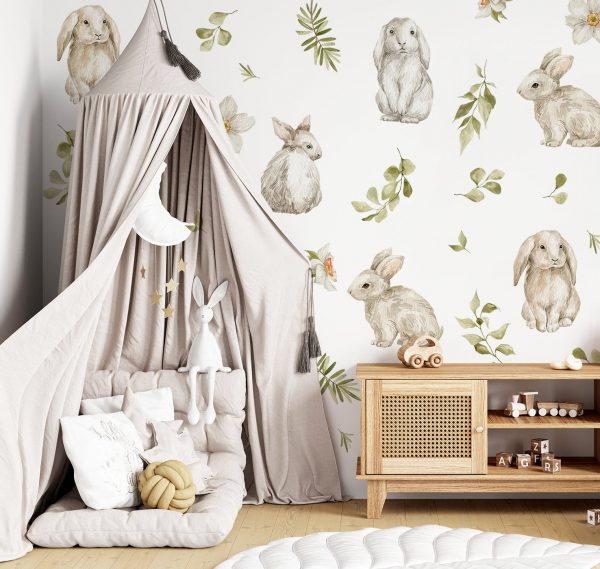 Obrovská sada samolepiek na stenu. Rabbit bunny farebné abstraktné – Samolepiace dekorácie na stenu