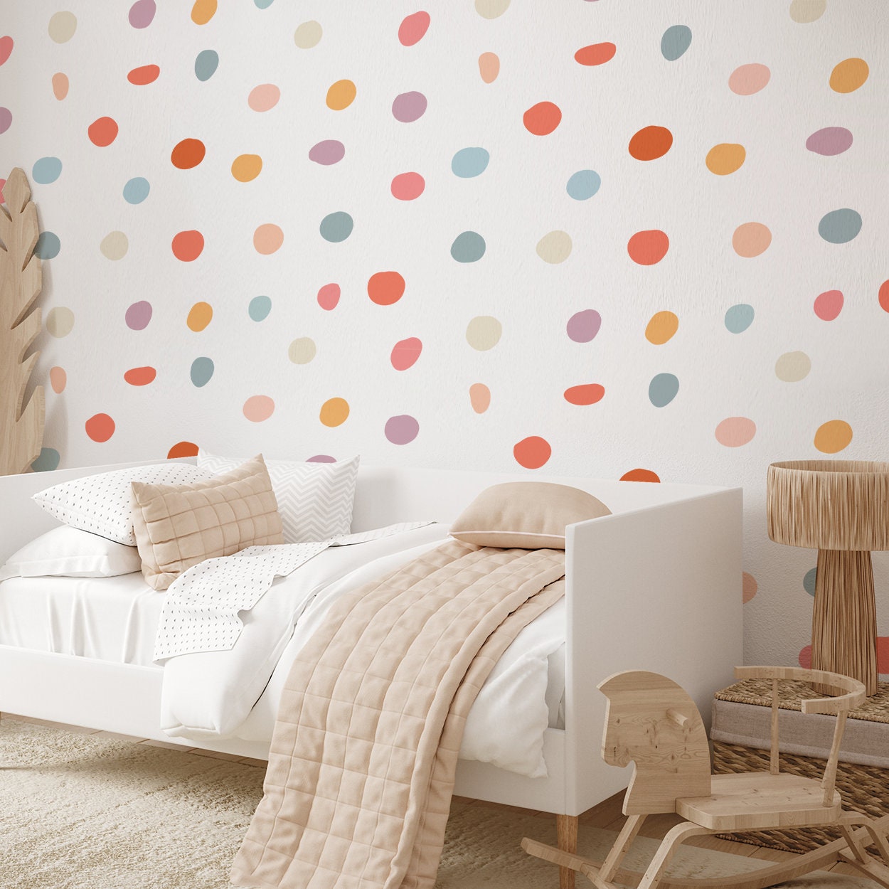 Dosiahnite dokonalý priestor pre svoje dieťa s našou minimalistickou nálepkou na stenu s bodkami vhodnou najmä do detskej izby. Obtlačok na stenu je jedným z najnovších trendov v oblasti bytových dekorácií. Samolepky rozmiestnite jednotlivo po celej stene podľa vlastných predstáv. Ľahko sa aplikujú a nezanechávajú na stenách stopy!