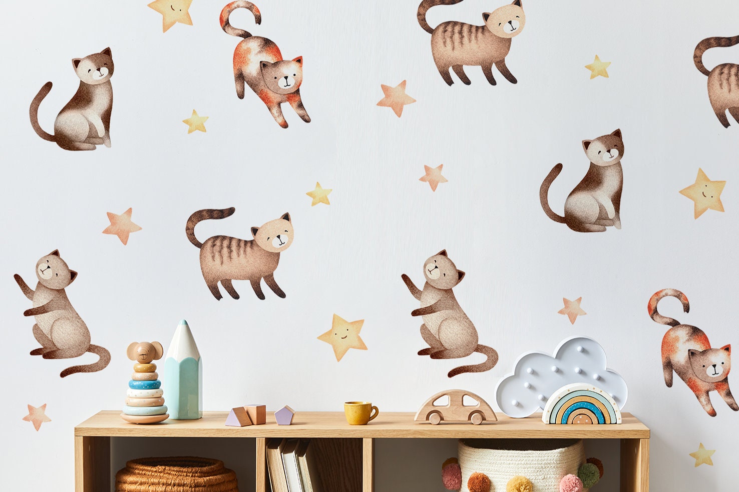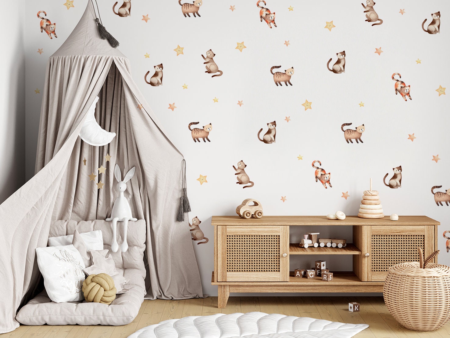 Vytvorte pre svoje dieťa dokonalý priestor pomocou našich samolepiek na stenu s mačkami. Nálepka na stenu je jedným z najnovších trendov v oblasti bytových dekorácií. Samolepky si môžete rozmiestniť jednotlivo po celej stene podľa vlastných predstáv. Ľahko sa aplikujú a nezanechávajú na stenách stopy!