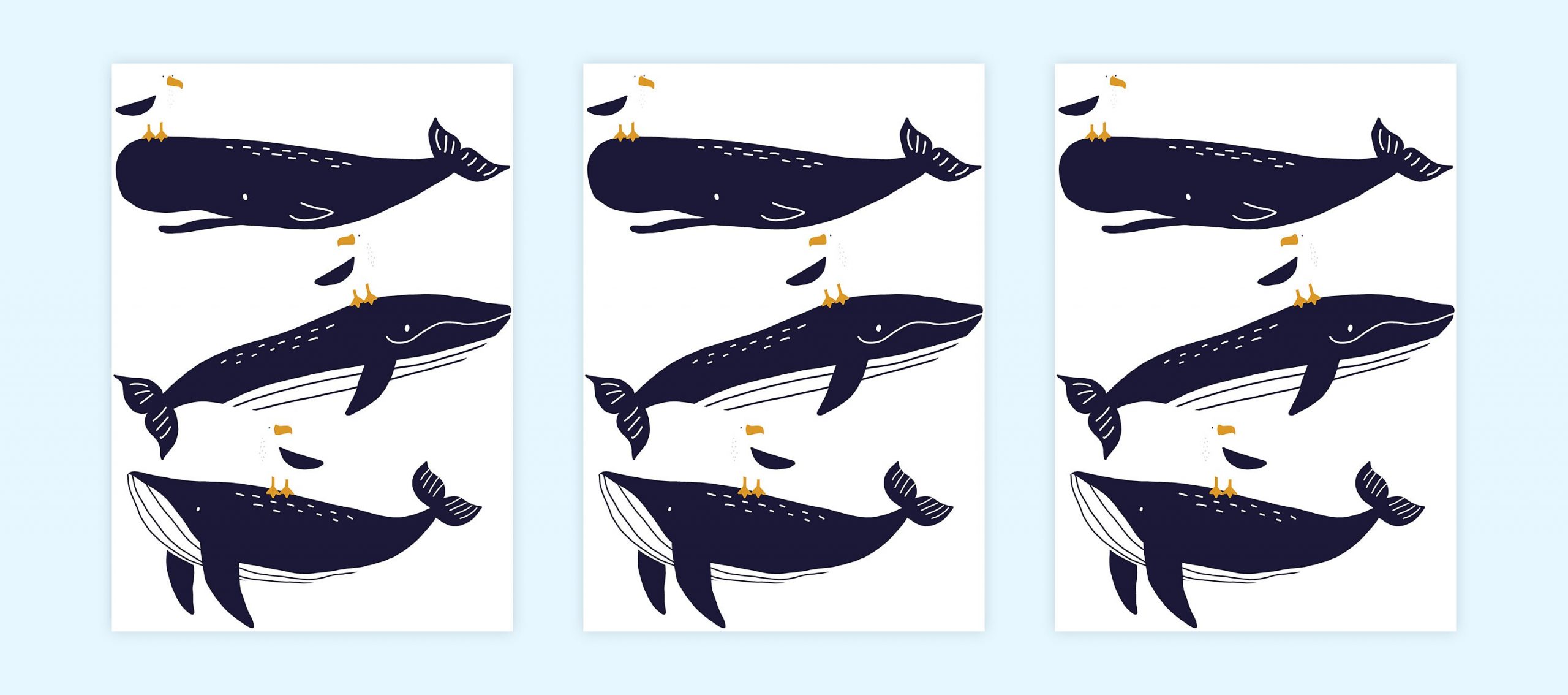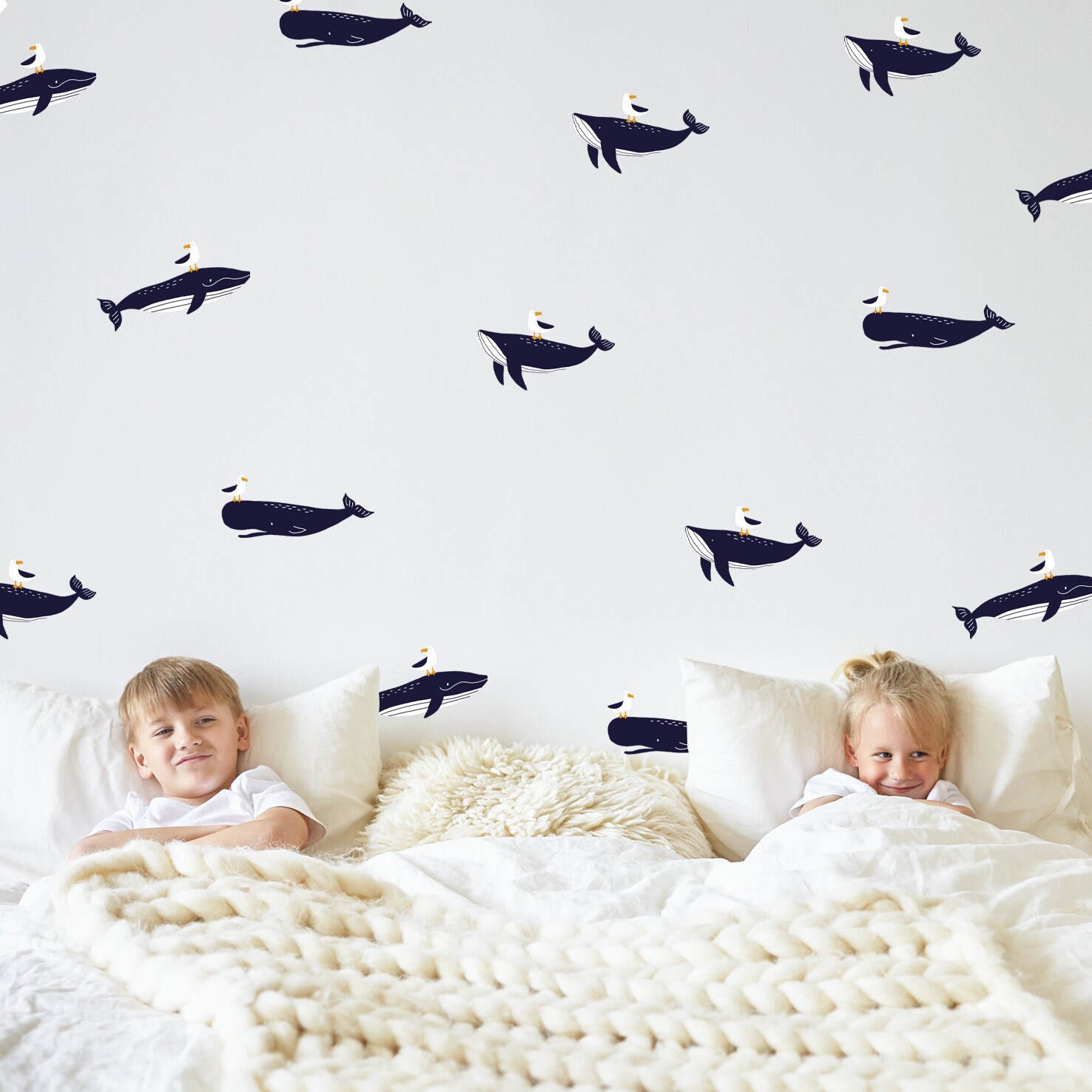 Veľryby nálepky na stenu. Zábavné veľryby – Samolepiace dekorácie na stenu